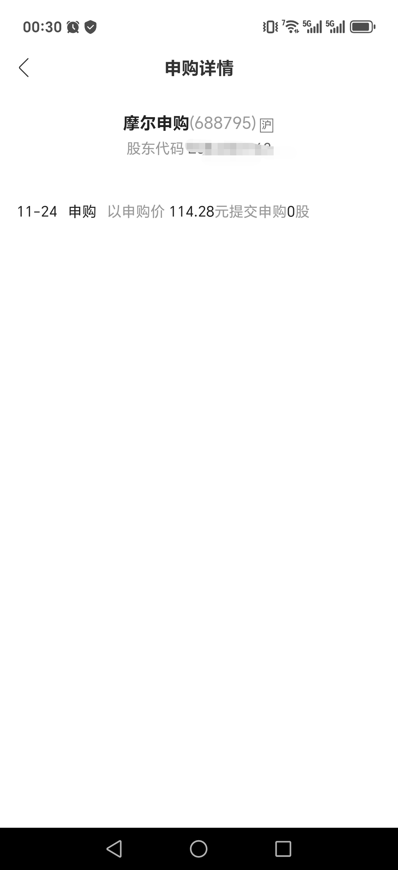 $摩尔申购(SH787795)$ 招商证券不知道搞什么飞机,昨天提交申购了,今天却发现显示申购0股,什么意思?