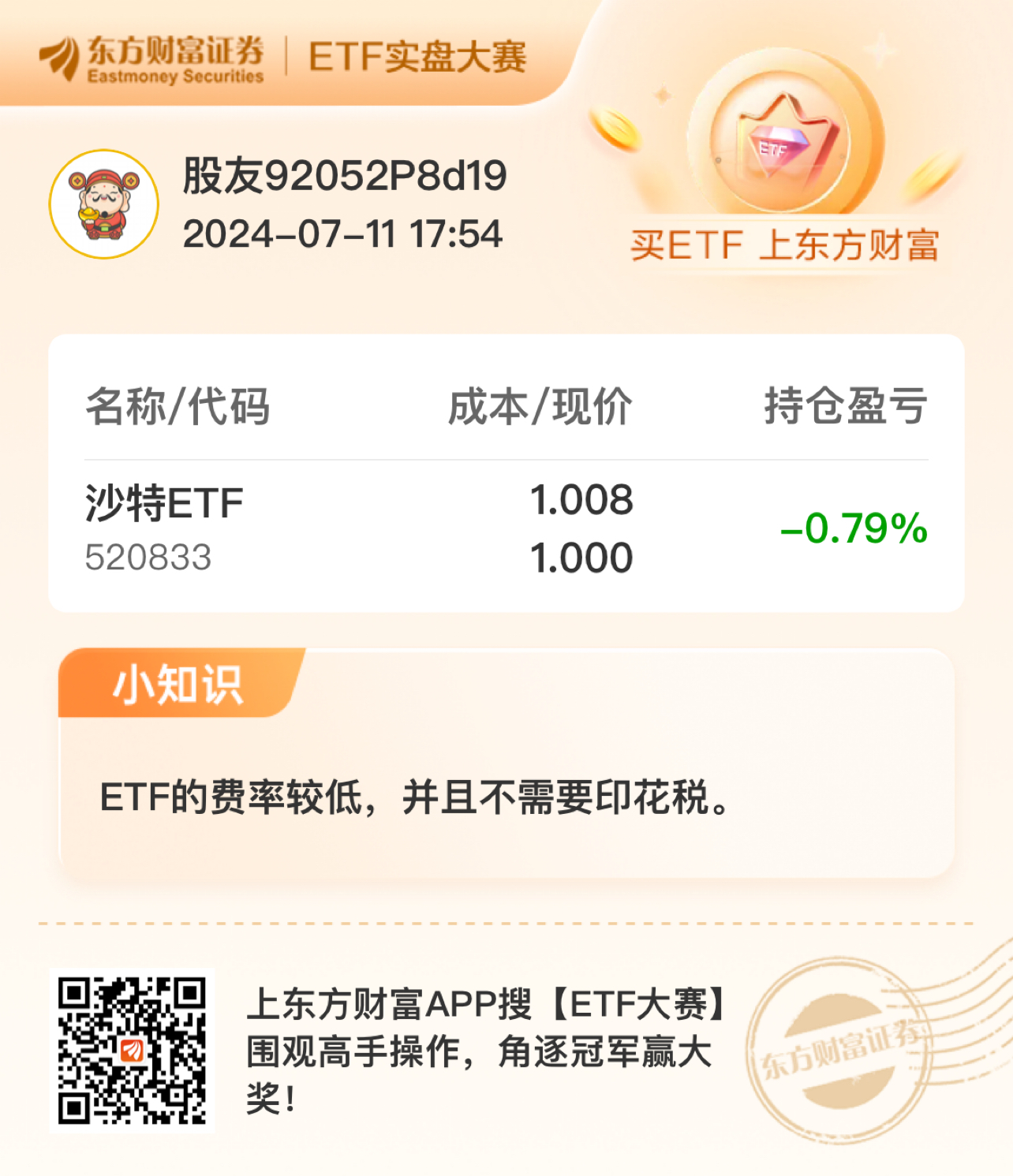 上东方财富APP搜【ETF大赛】围观高手操作,角逐冠军赢大奖#晒ETF持仓赢奖励