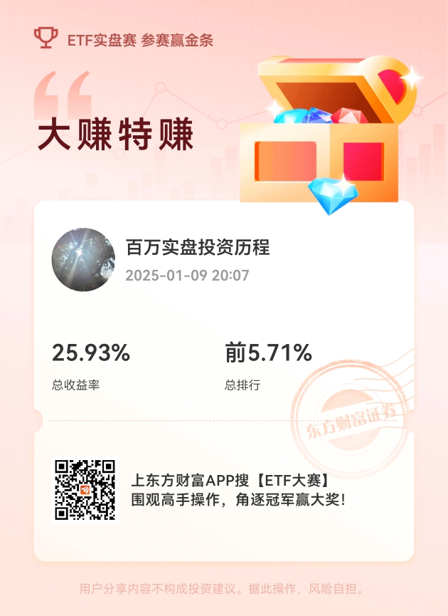 这是我的ETF实盘大赛战绩,欢迎友友前来PK!第一次玩这个ETF大赛,实盘就拿到