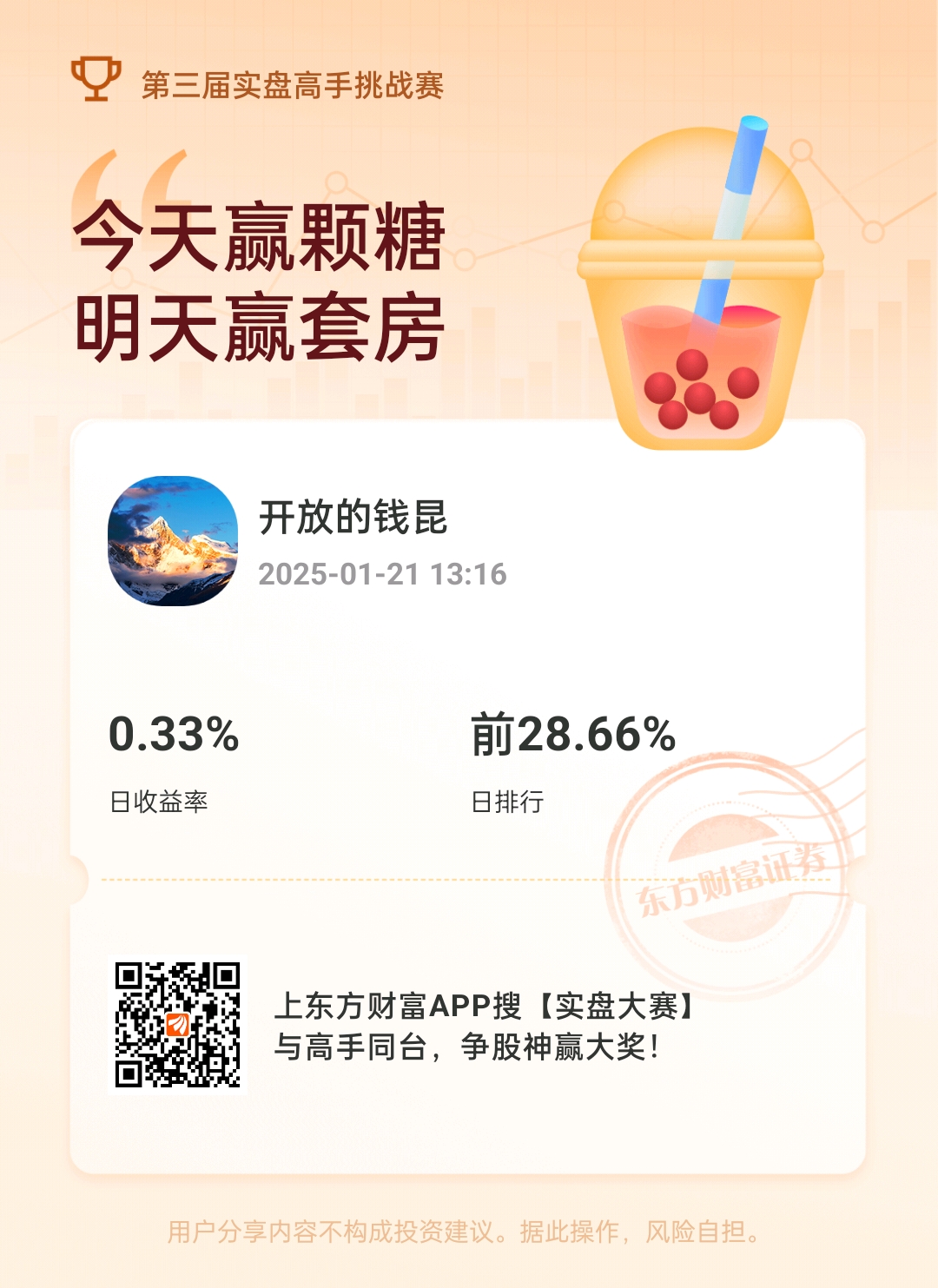温馨提示: 1.根据《证券法》规定,禁止编造、传播虚假信息或者误导性信息,扰乱证券市场;2.用户在本社区发表的所有资料、言论等仅代表个人观点,与本网站立场无关,不对您构成任何投资建议。用户应基于自己的独立判断,自行决定证券投资并承担相应风险。《东方财富社区管理规定》
