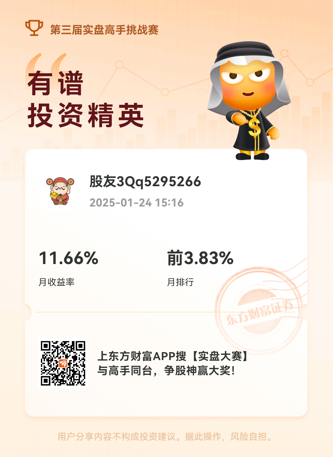 这是我的实盘大赛第14天,今日战绩1.73%,合计11.66%一样大家可以关注我