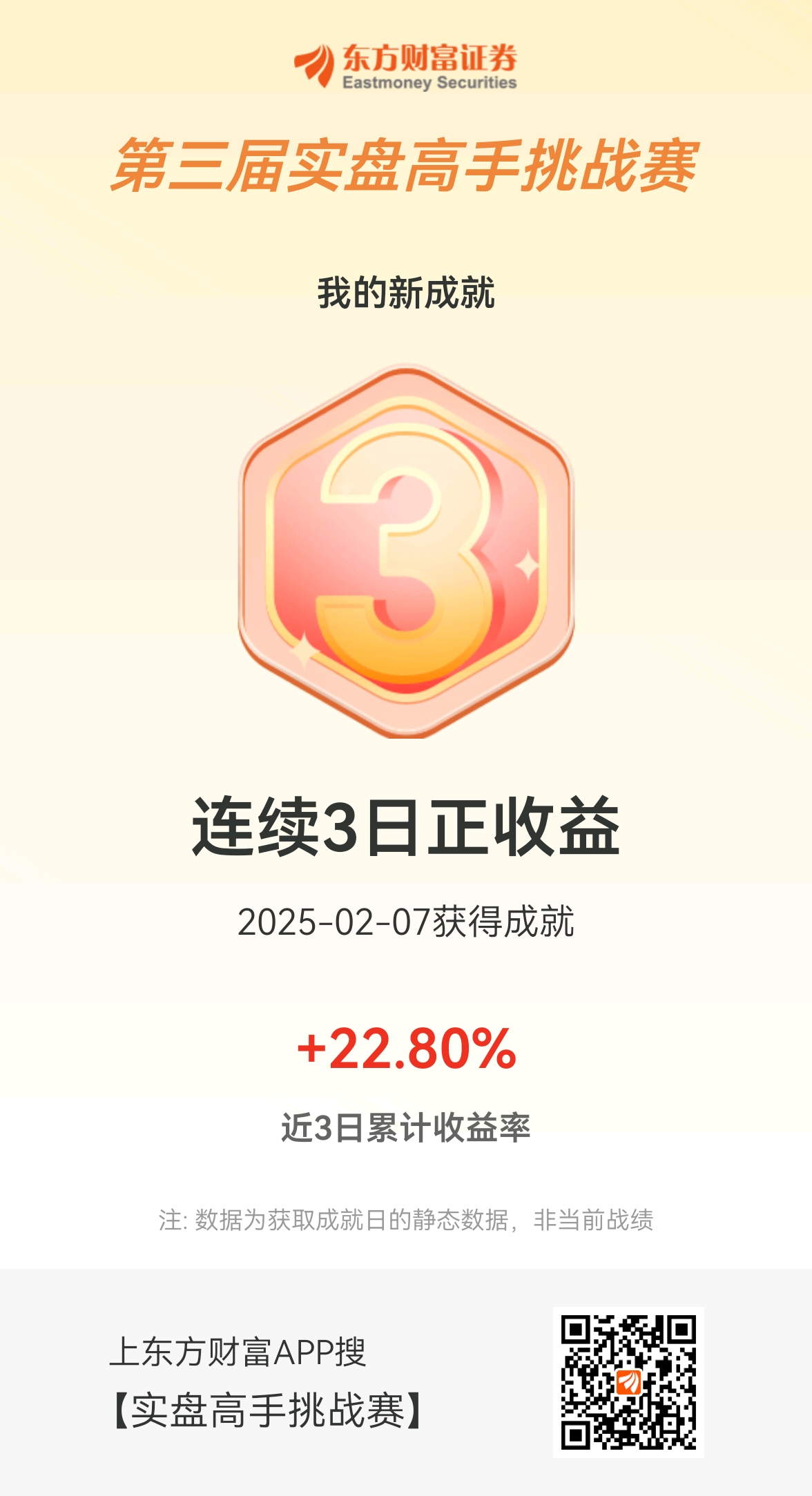我解锁了实盘大赛新成就,走过路过点个赞!