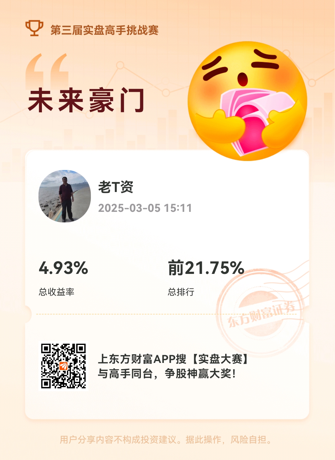 这是我的实盘大赛战绩,欢迎友友前来PK!每天吃条蚂蚁腿的水平