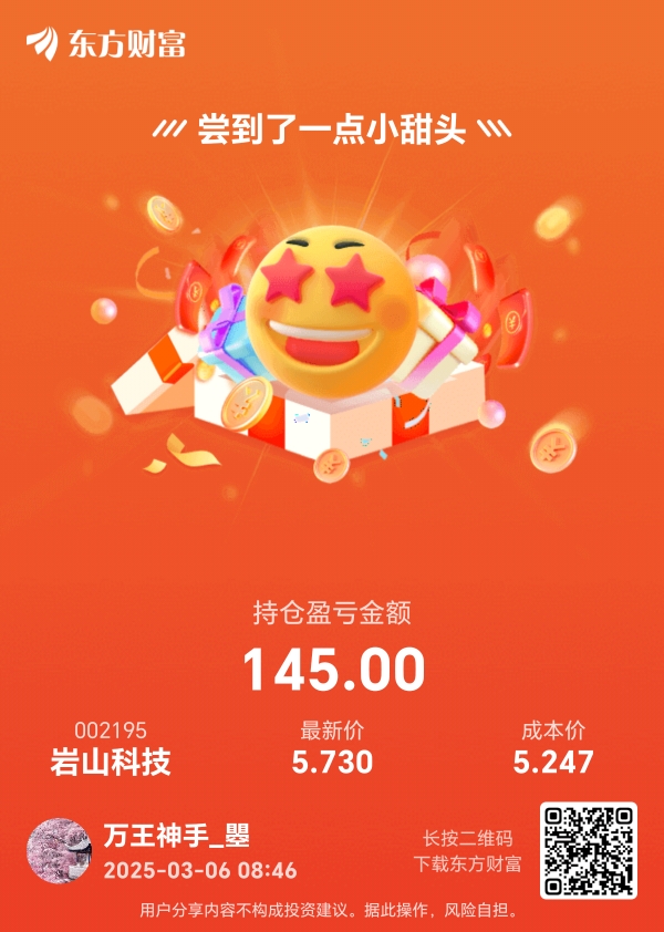 温馨提示: 1.根据《证券法》规定,禁止编造、传播虚假信息或者误导性信息,扰乱证券市场;2.用户在本社区发表的所有资料、言论等仅代表个人观点,与本网站立场无关,不对您构成任何投资建议。用户应基于自己的独立判断,自行决定证券投资并承担相应风险。《东方财富社区管理规定》