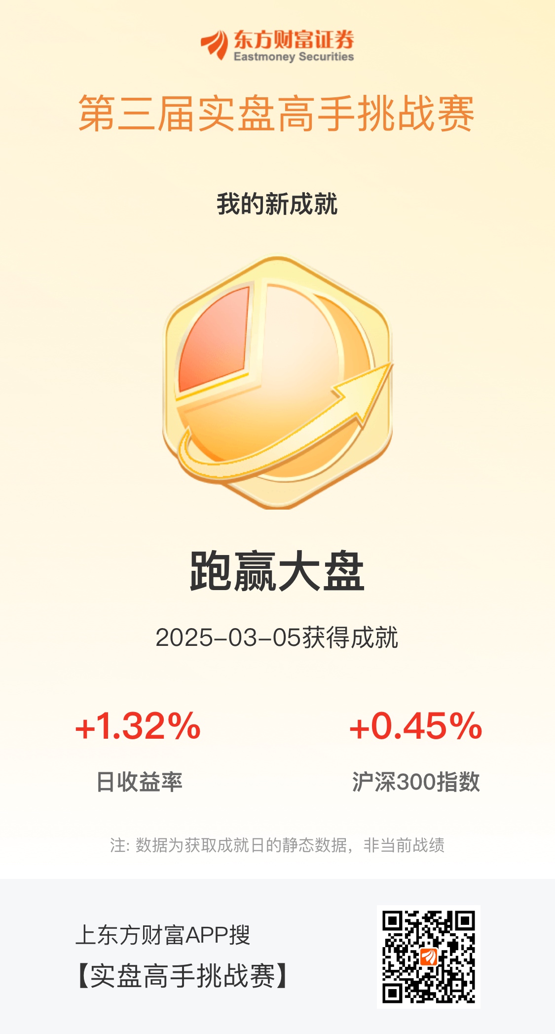我解锁了实盘大赛新成就,走过路过点个赞!