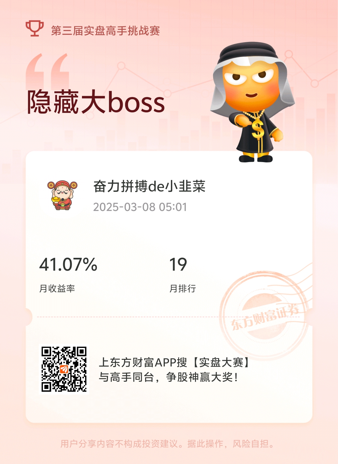温馨提示: 1.根据《证券法》规定,禁止编造、传播虚假信息或者误导性信息,扰乱证券市场;2.用户在本社区发表的所有资料、言论等仅代表个人观点,与本网站立场无关,不对您构成任何投资建议。用户应基于自己的独立判断,自行决定证券投资并承担相应风险。《东方财富社区管理规定》