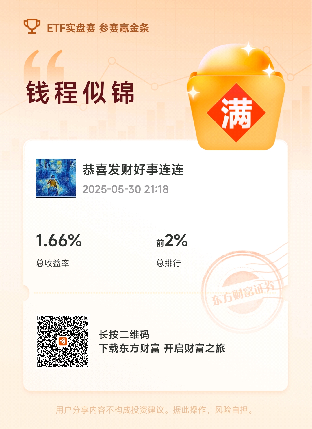 这是我的ETF实盘大赛战绩,欢迎友友前来PK!