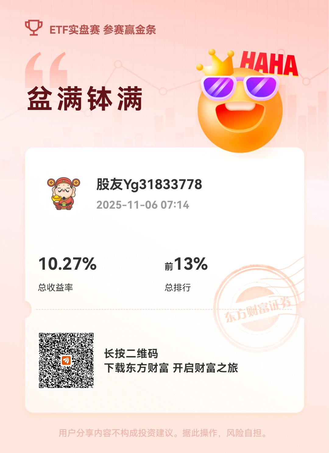 这是我的ETF实盘大赛战绩,欢迎友友前来PK!