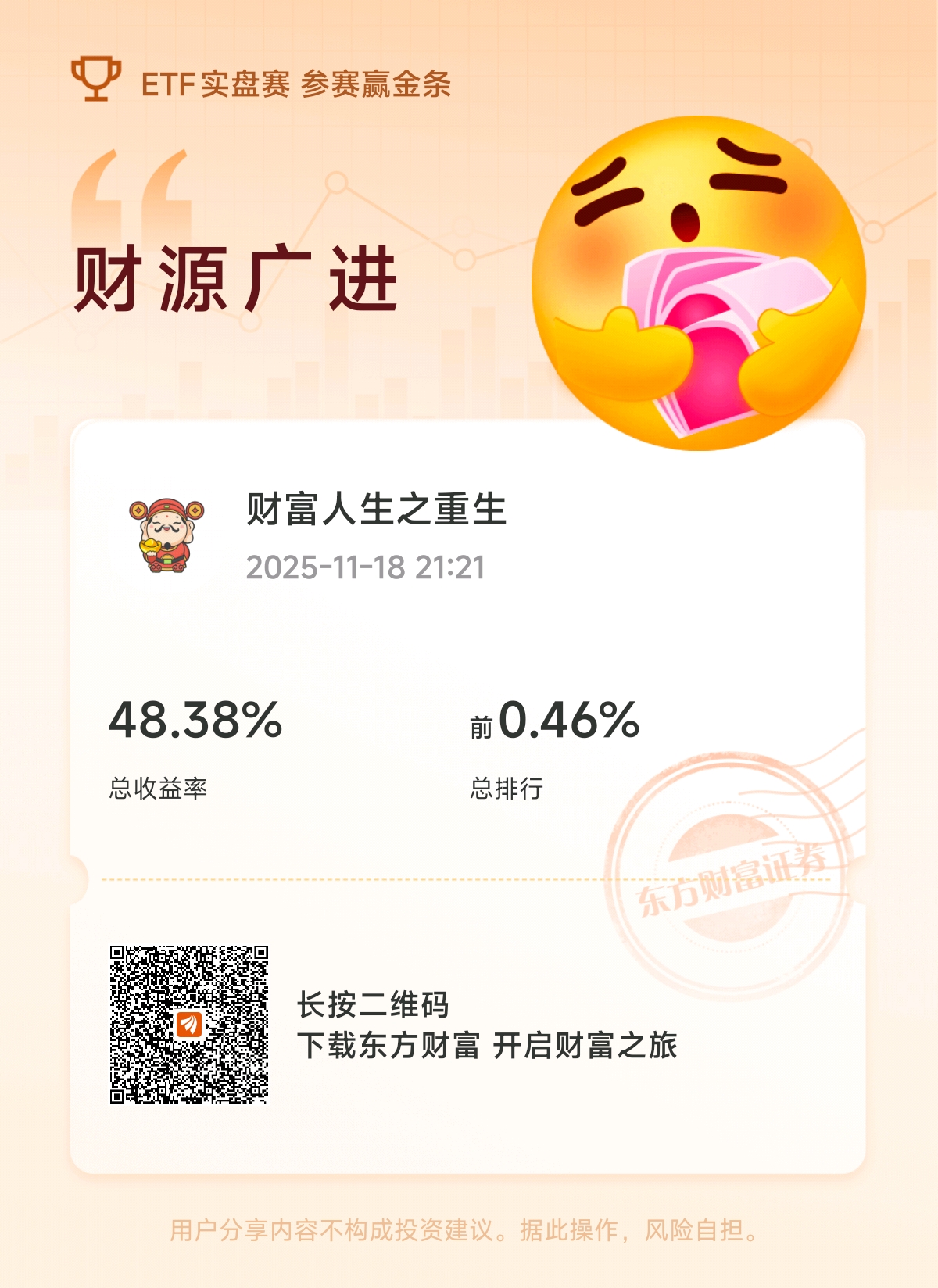 这是我的ETF实盘大赛战绩,欢迎友友前来PK!基基就是好!