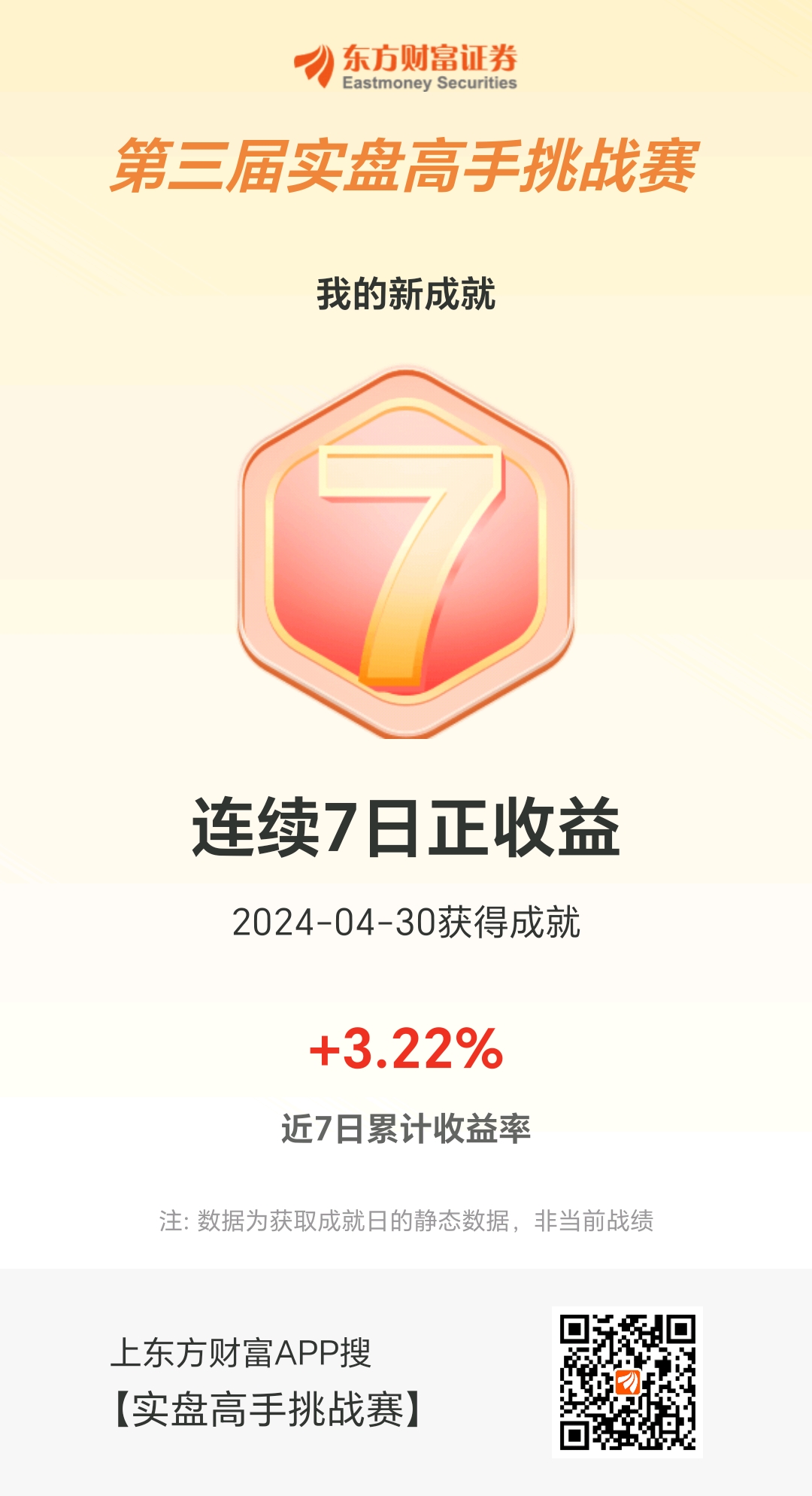 我解锁了实盘大赛新成就,走过路过点个赞!