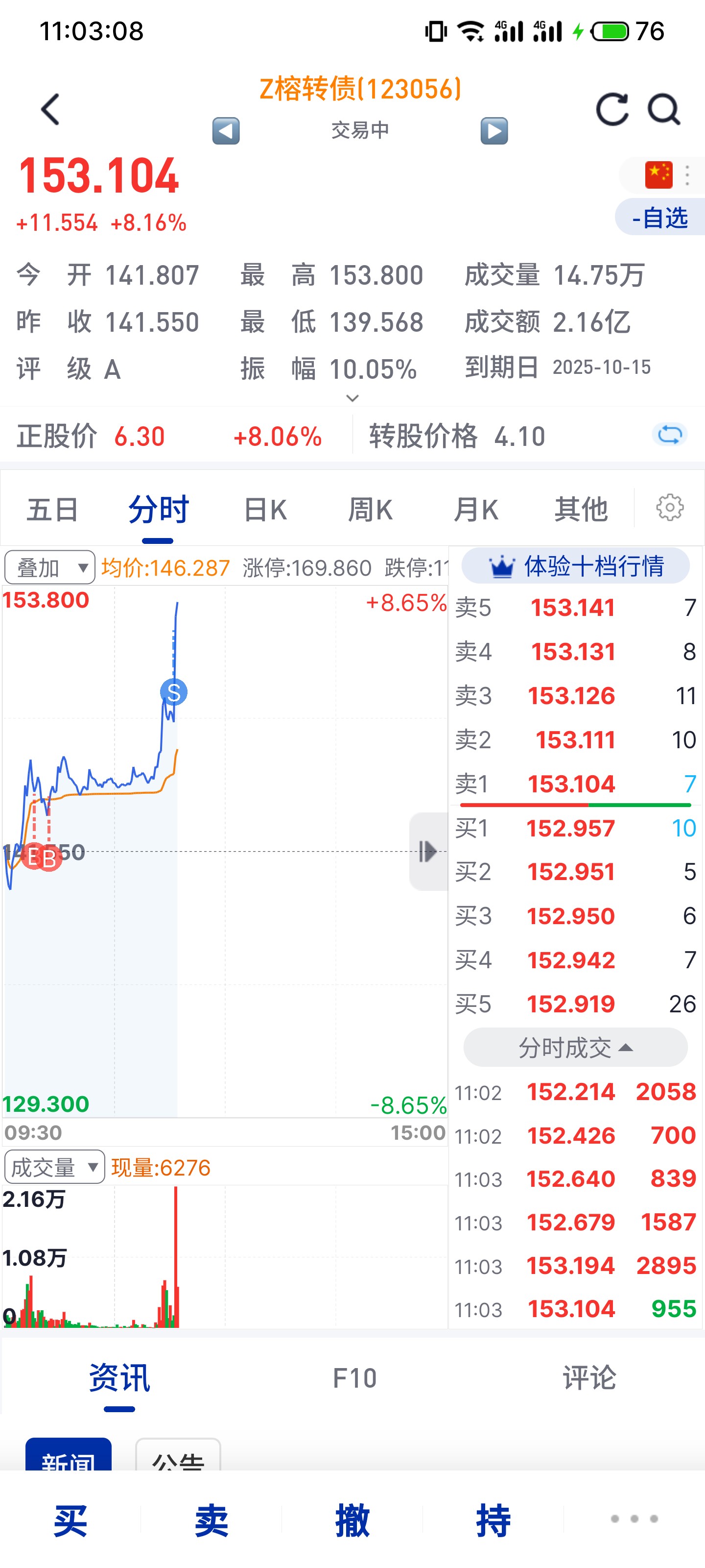 $Z榕转债(SZ123056)$ 144.1买入。$雪榕生物(SZ300511)$