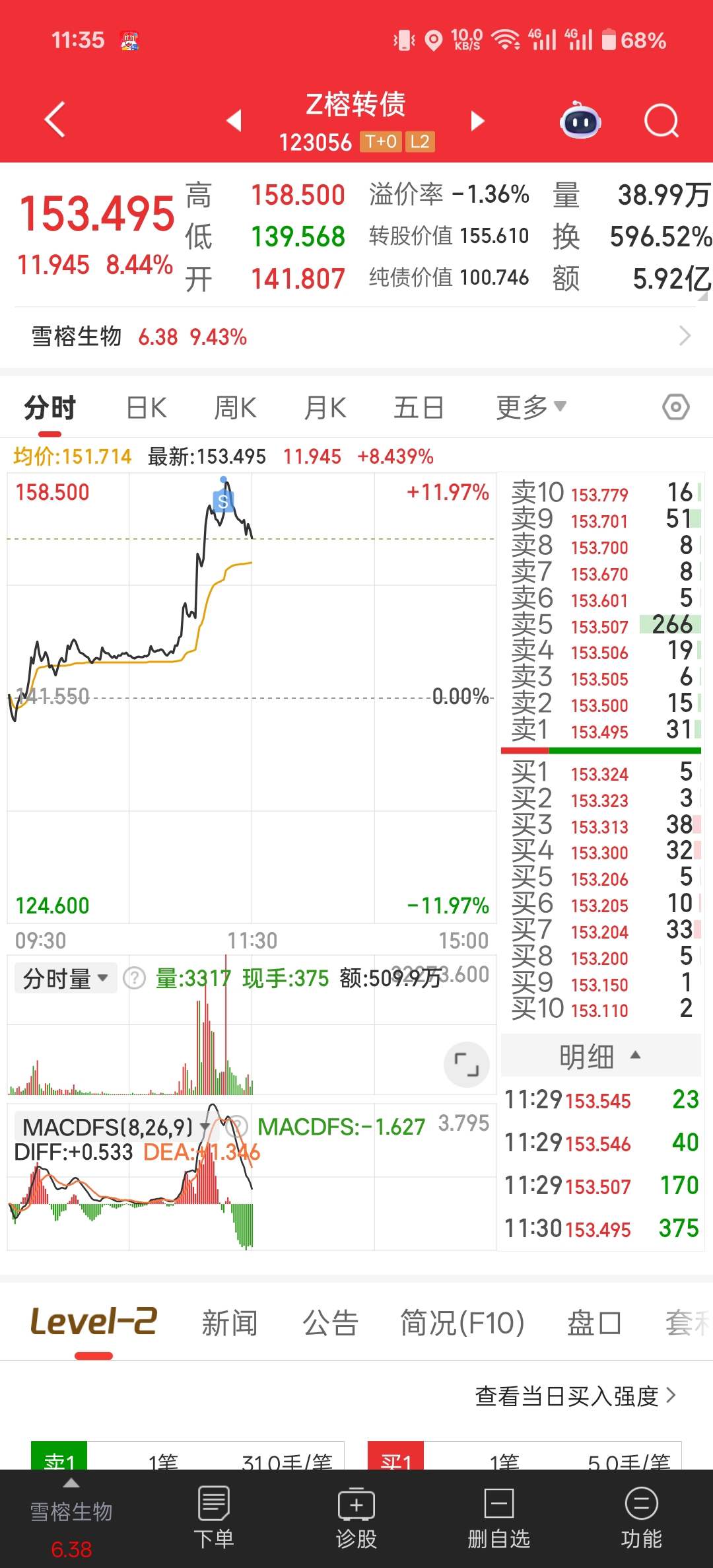 $Z榕转债(SZ123056)$ 感谢雪榕!158走了