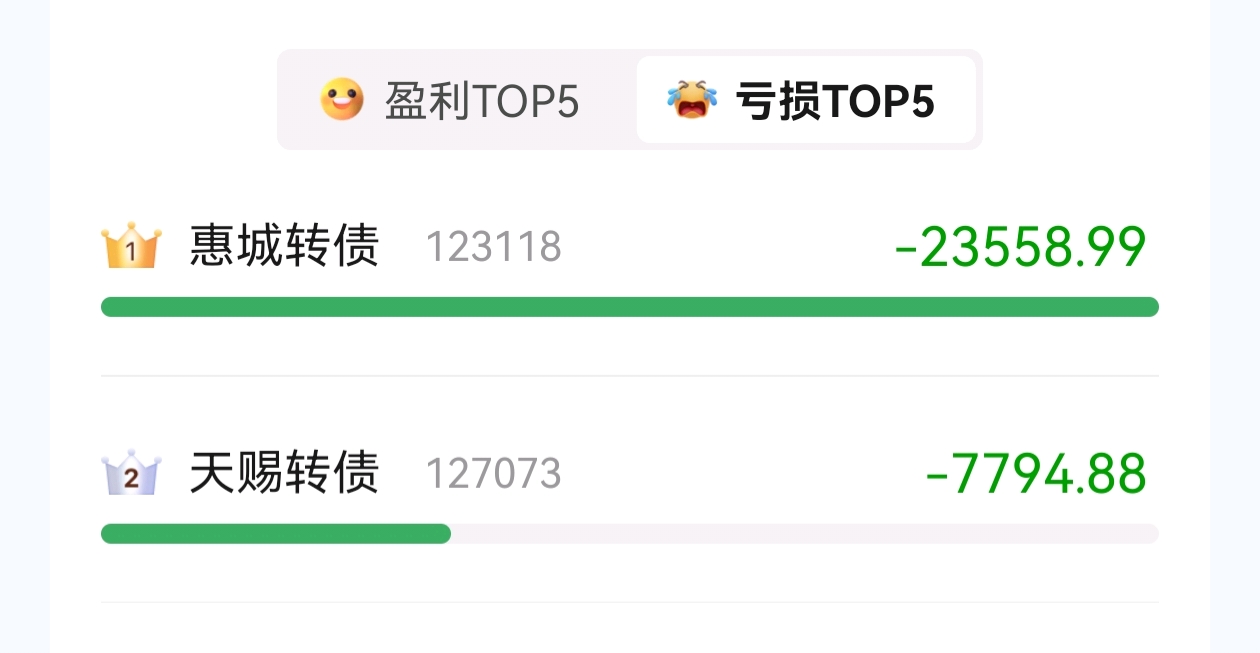 $惠城转债(SZ123118)$ 7号扛不住亏了23个点卖了,要不要买回来啊,之前亏钱的兄弟们还在吗