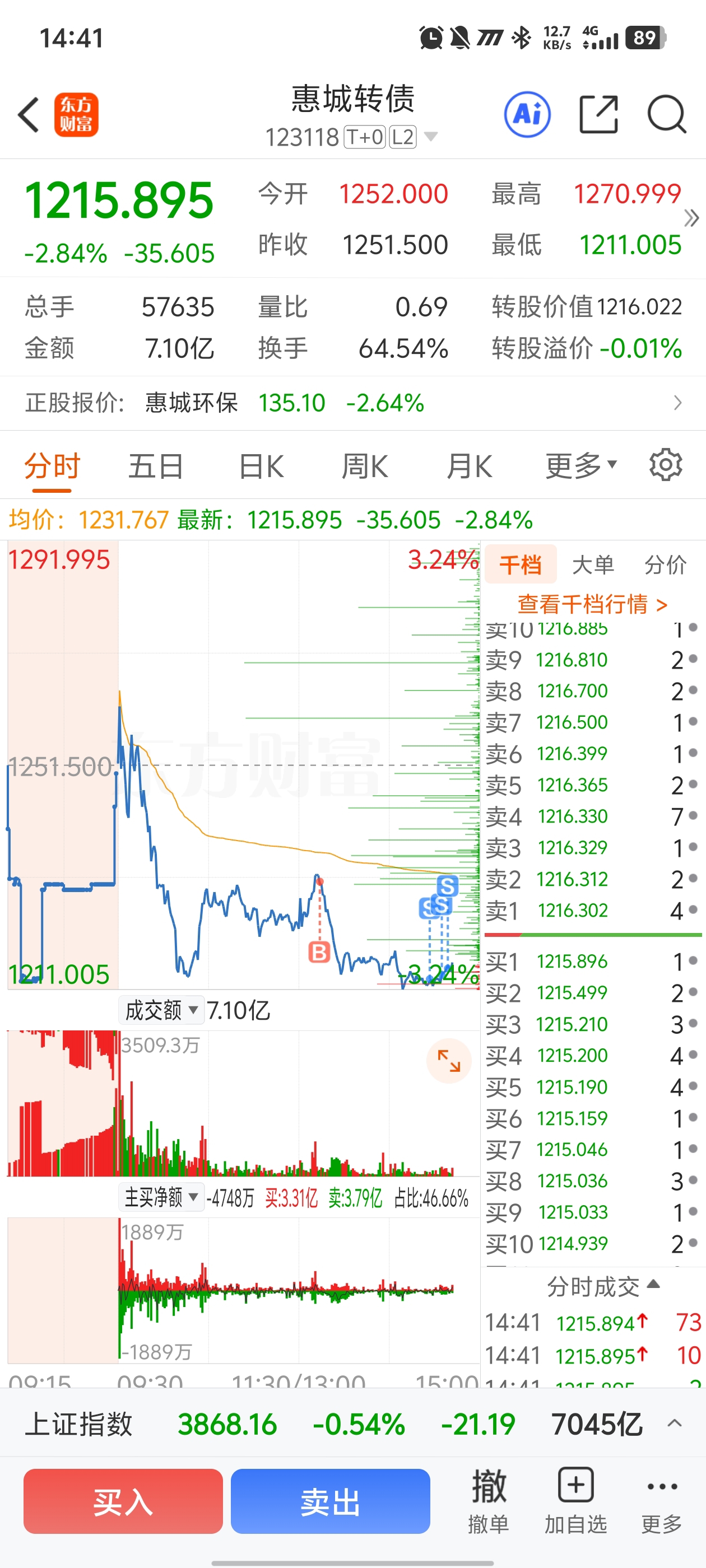 $惠城转债(SZ123118)$ 玩不过,害怕明天继续跌,割了算了