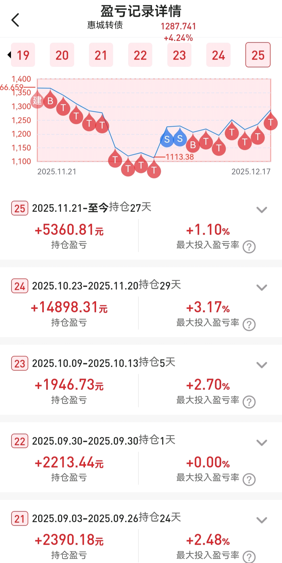 惠城逢低进入,升高减仓,若是趋势破于自己的纪律线,执行纪律止盈或者止损,等下一次