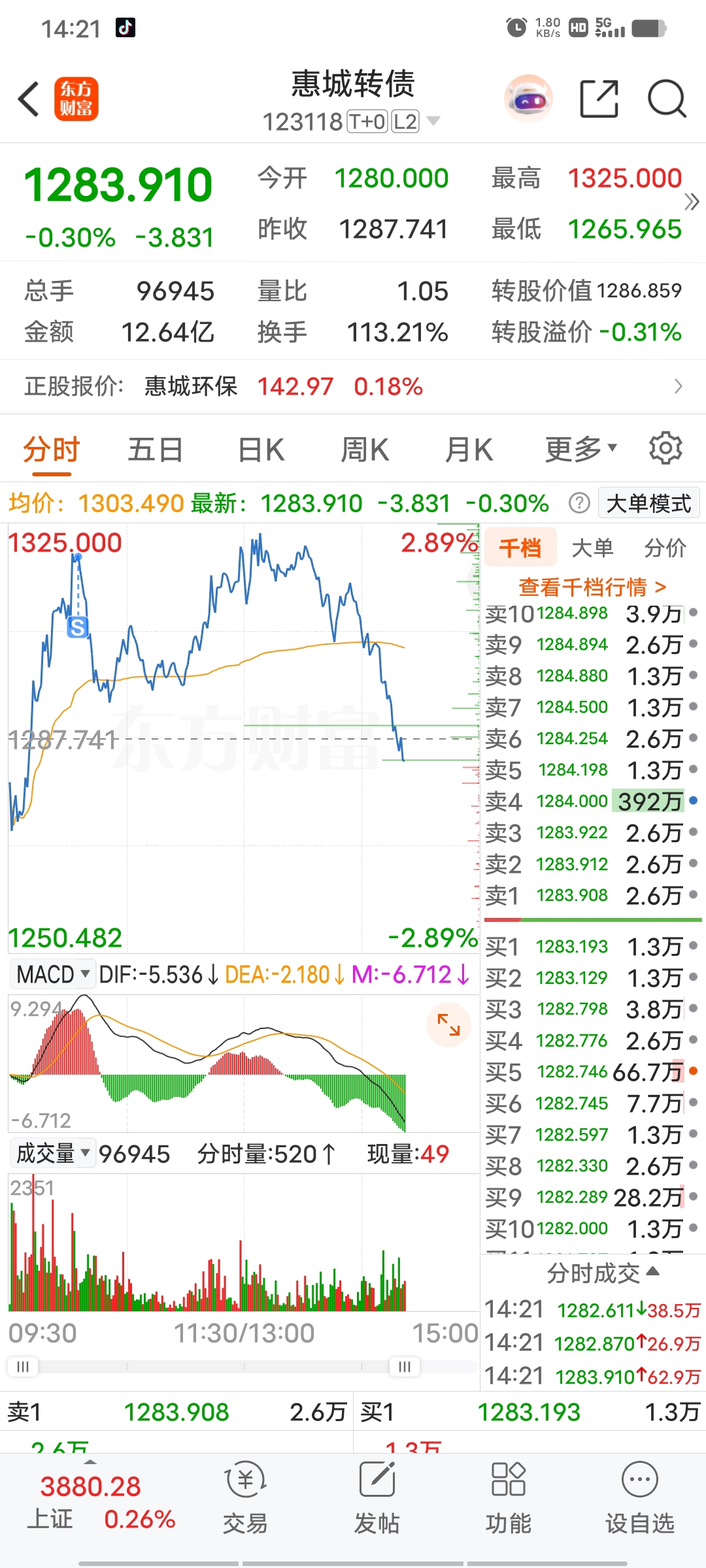 $惠城转债(SZ123118)$ 今天一战封神了,使劲砸吧