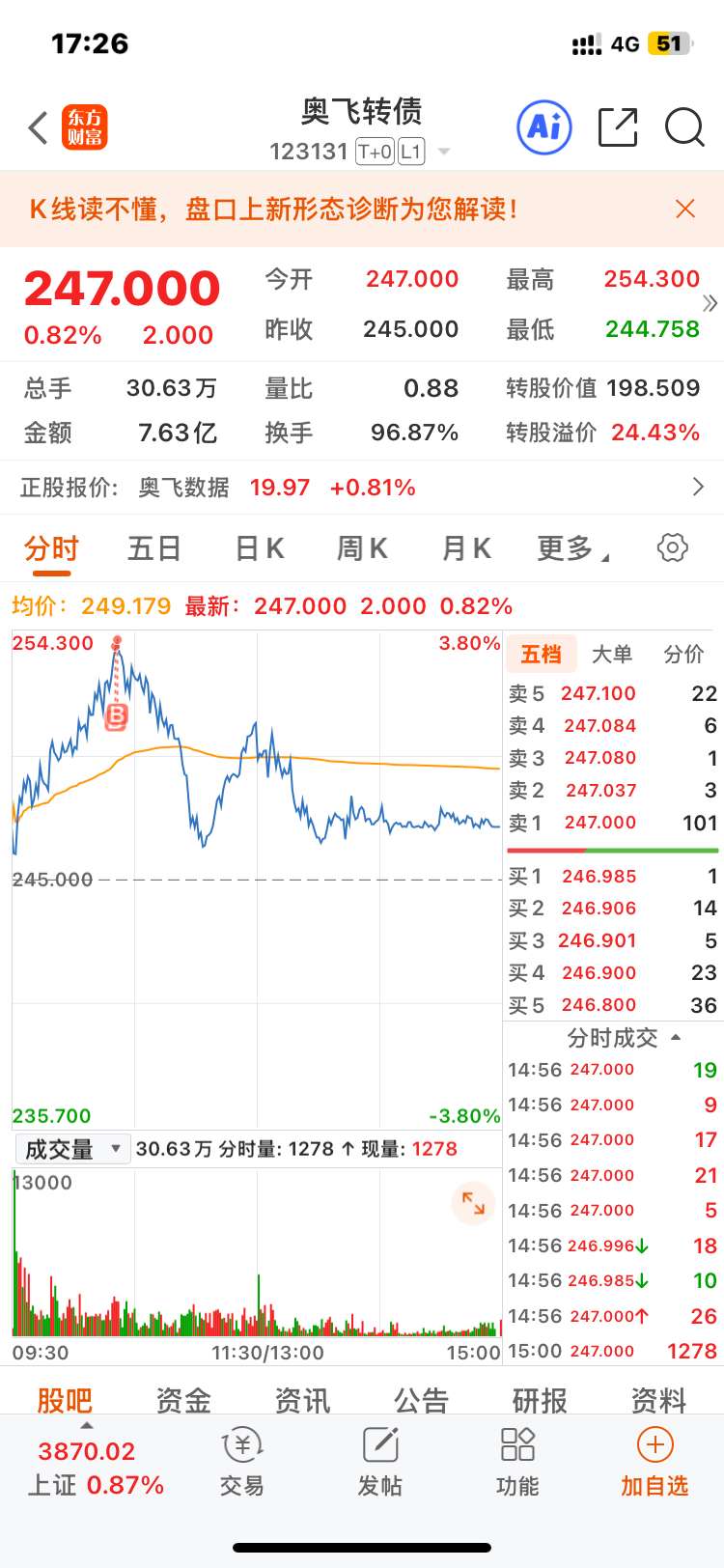 $奥飞转债(SZ123131)$ 今天唯一的败笔