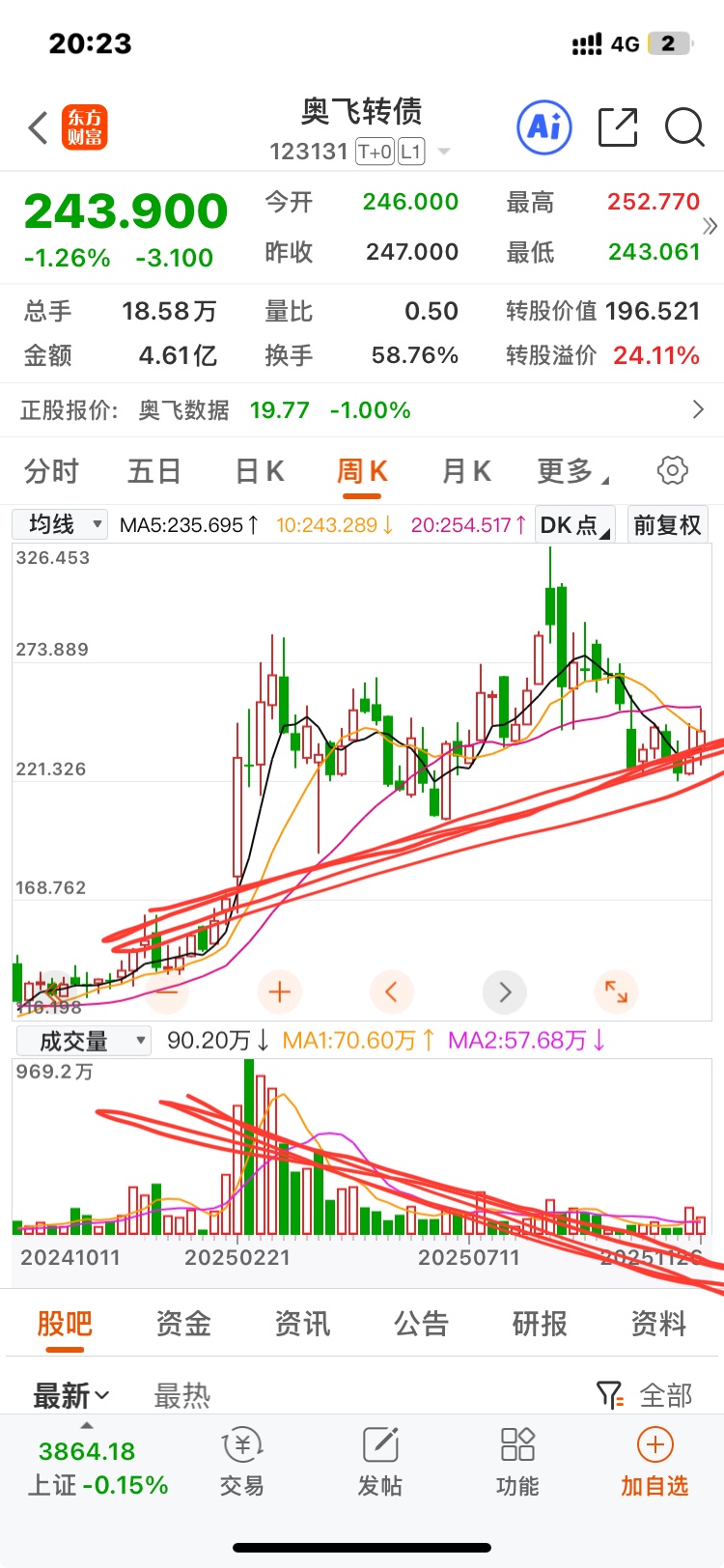 $奥飞转债(SZ123131)$ 债,量价背离,不动