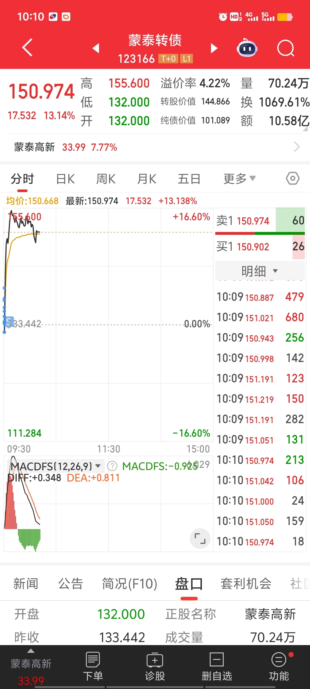 $蒙泰转债(SZ123166)$ 血赚一个点