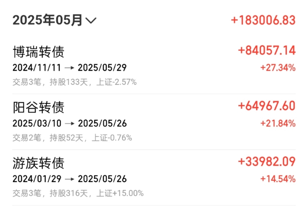 20250529可转债投资,周一出了阳谷、游族转债;今天进天阳、乐歌、欧通转债,出了正裕、博瑞!!!