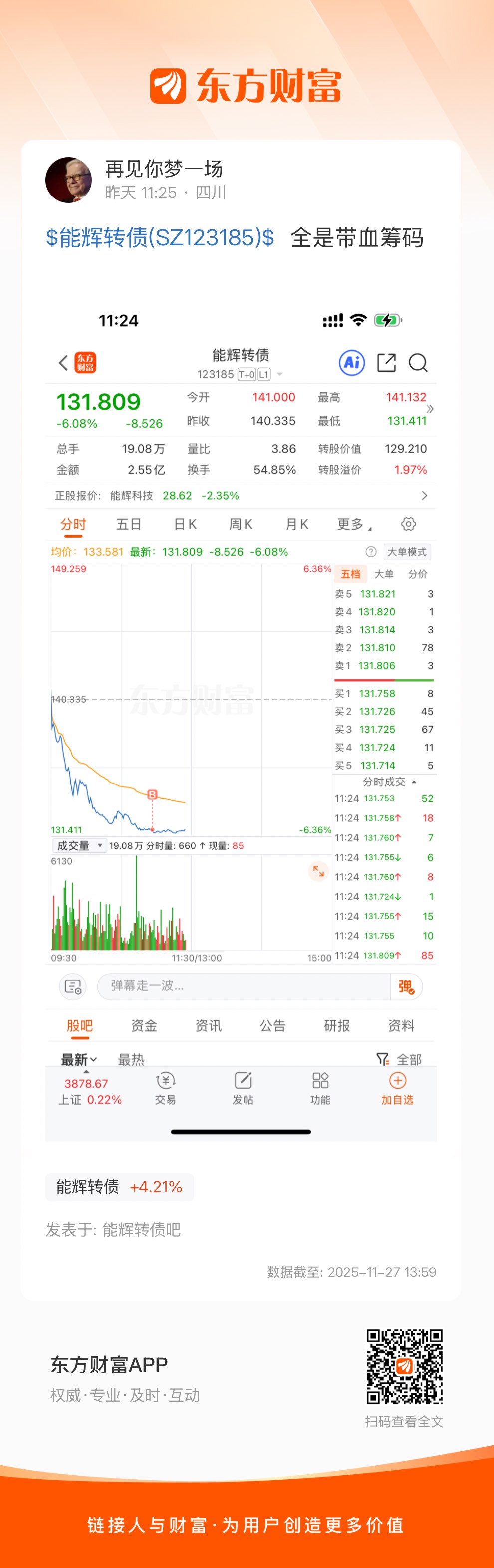 $能辉转债(SZ123185)$  全是带血筹码