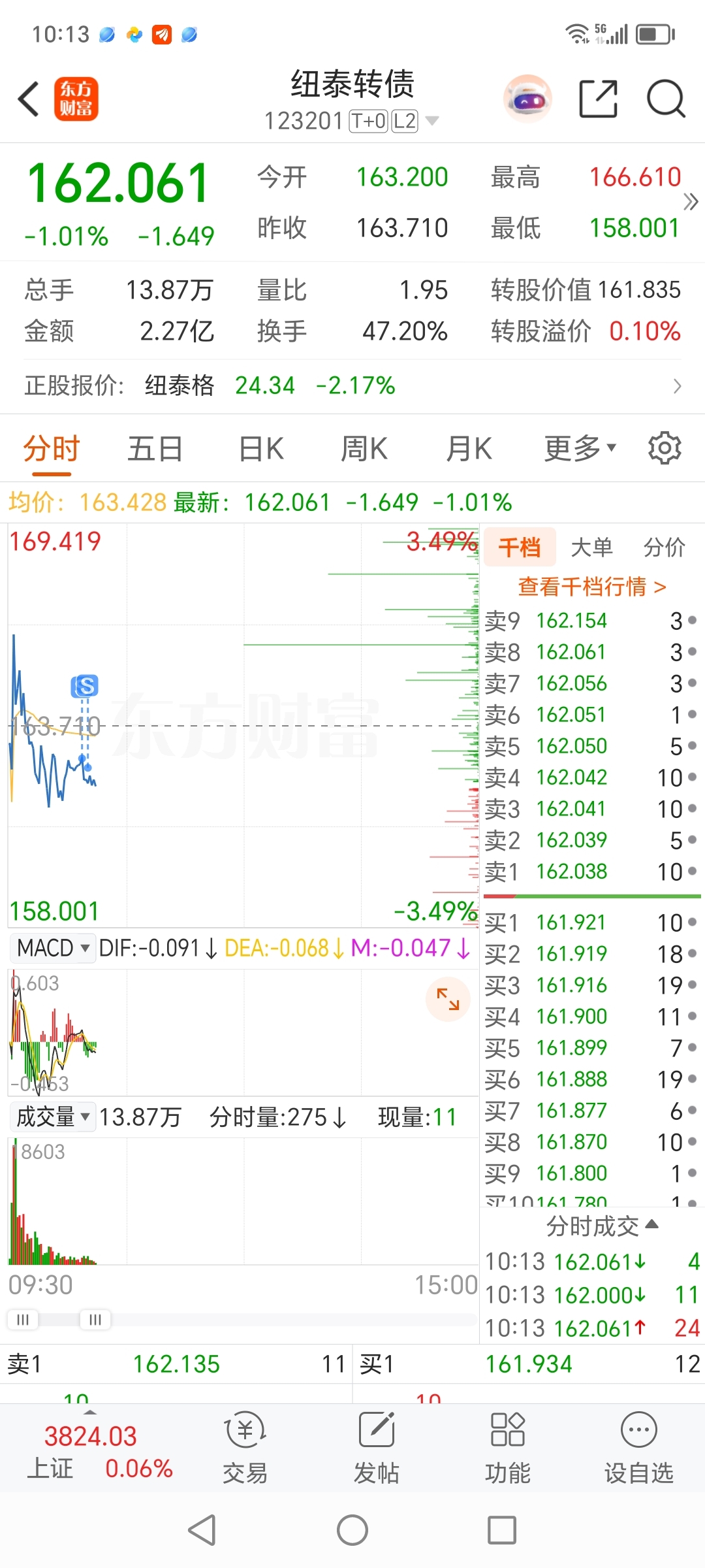 $纽泰转债(SZ123201)$ 166没卖162卖了不能格局一点