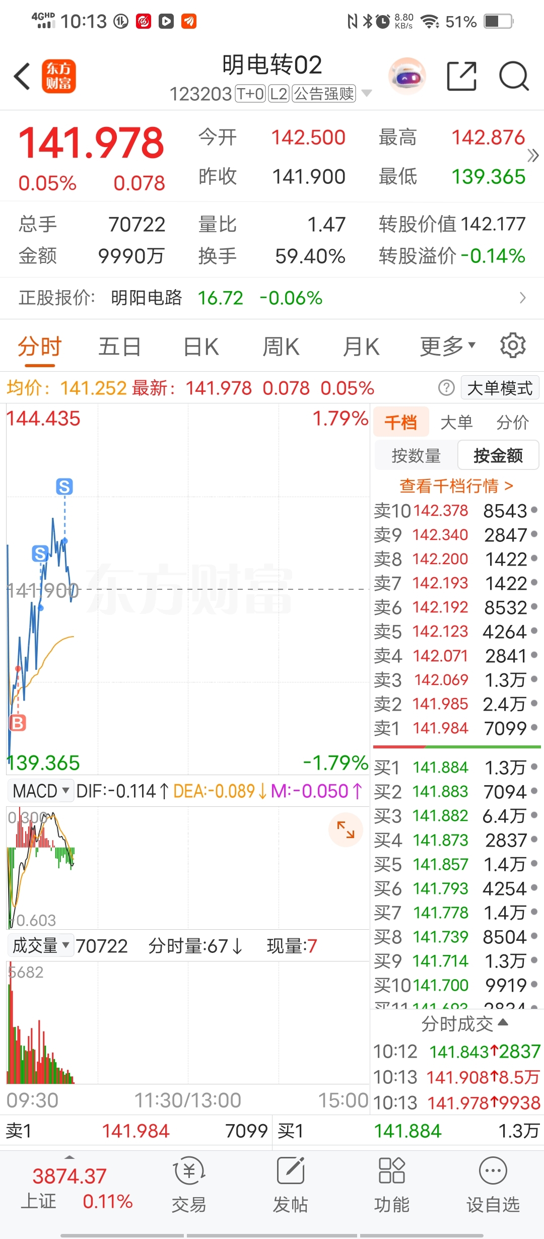 $明电转02(SZ123203)$ 尾盘再进有溢价转股去