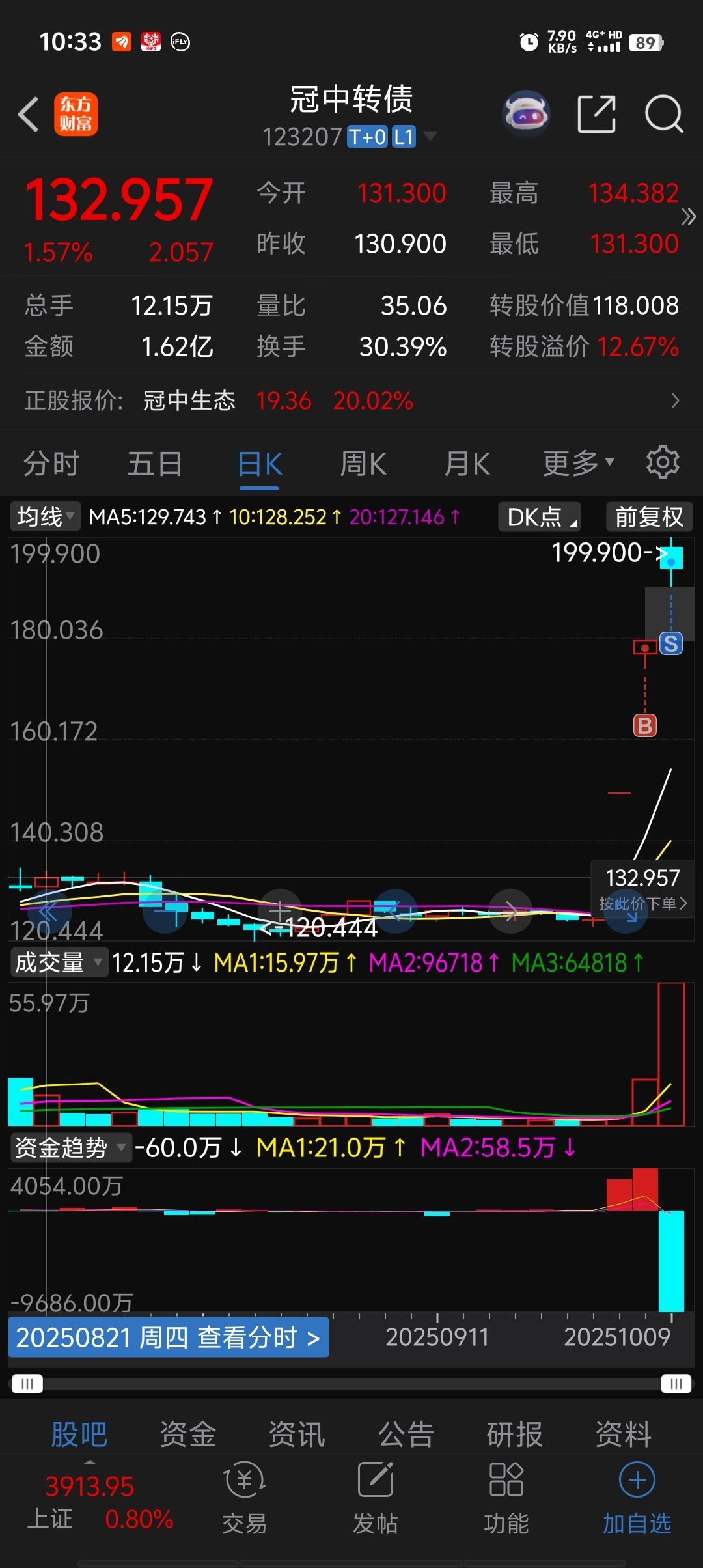 $冠中转债(SZ123207)$ 吃了肉就走了