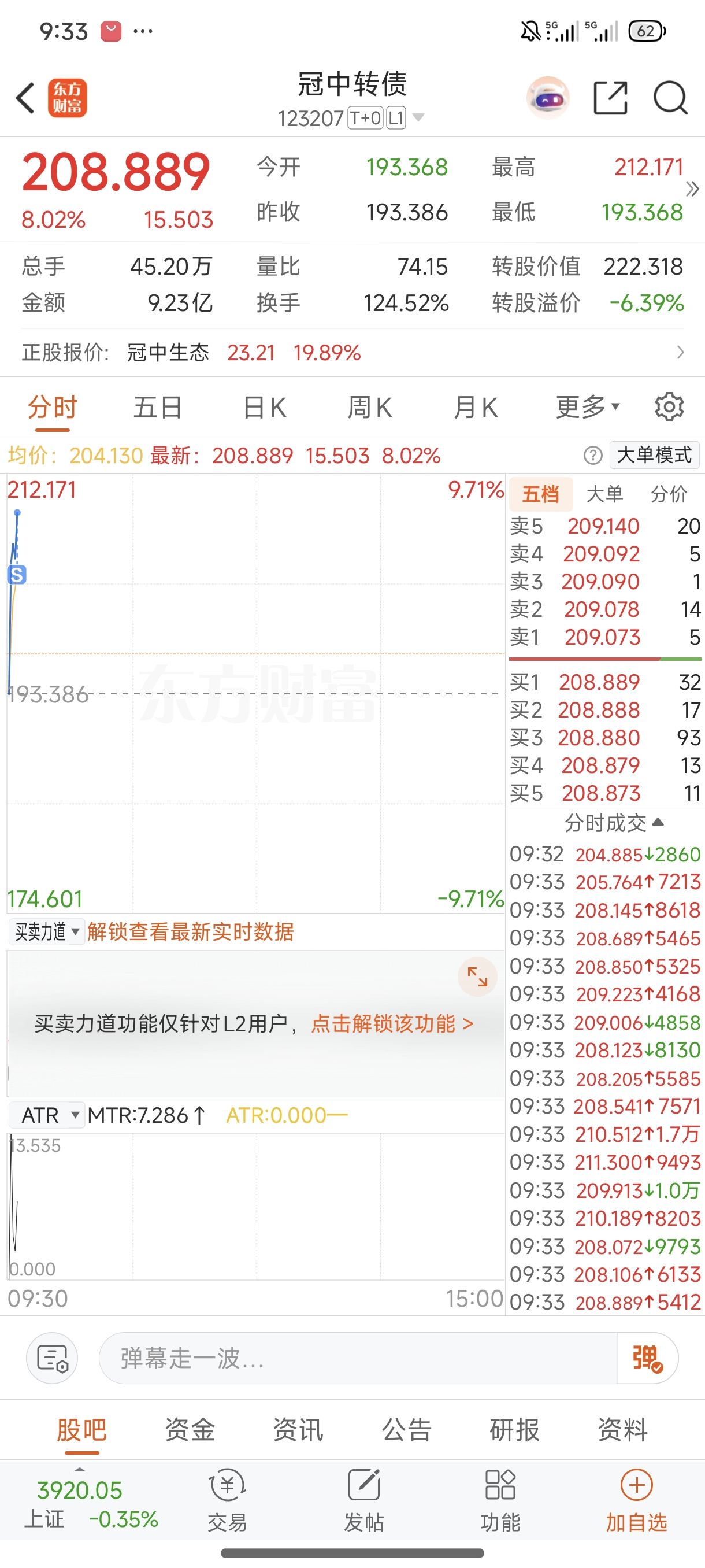 $冠中转债(SZ123207)$ 208.888跑的,谢谢,你们吃肉,我怕