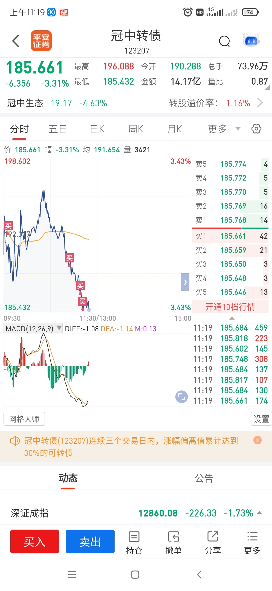 $冠中转债(SZ123207)$ 不对劲,越补仓越难搞。走啦!亏钱赔本