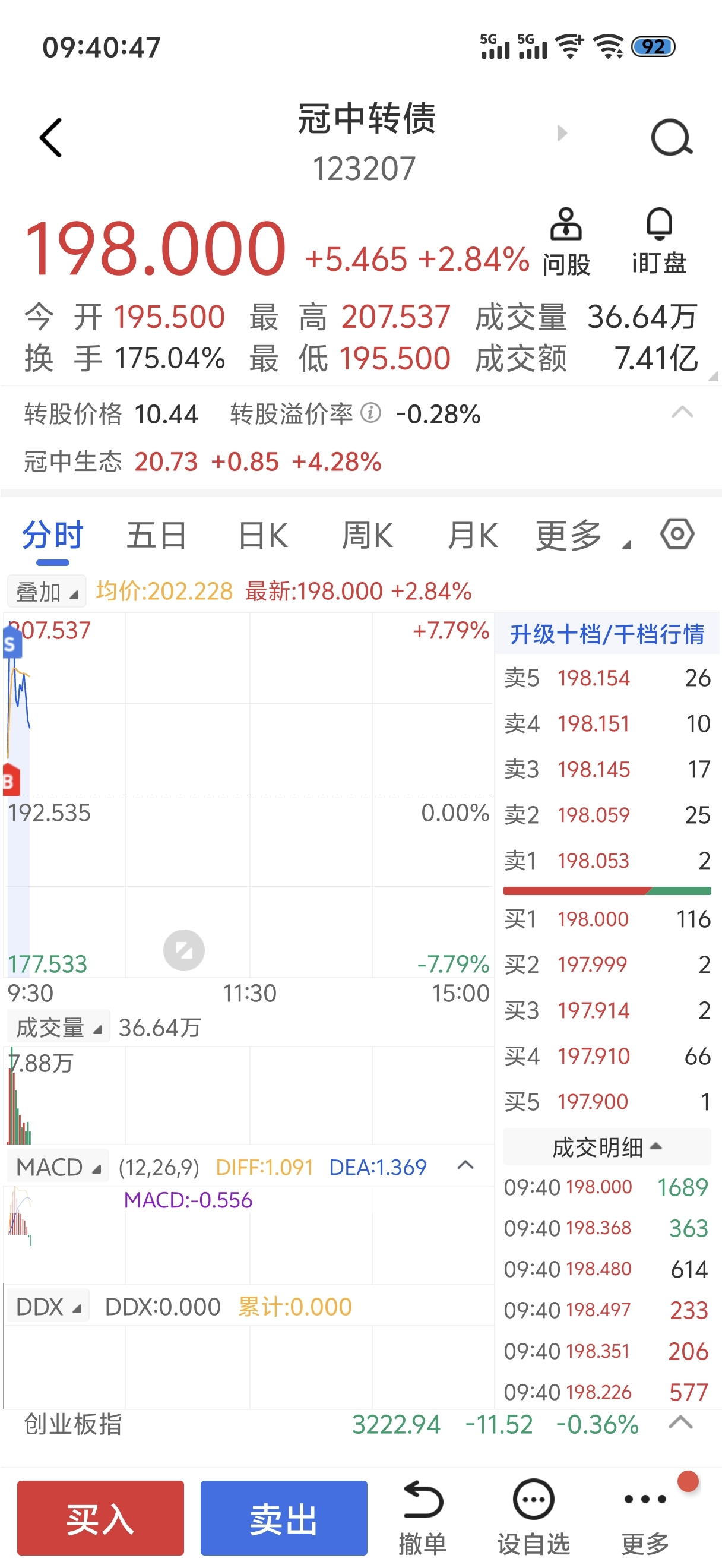 $冠中转债(SZ123207)$ 日常早盘一波,下班