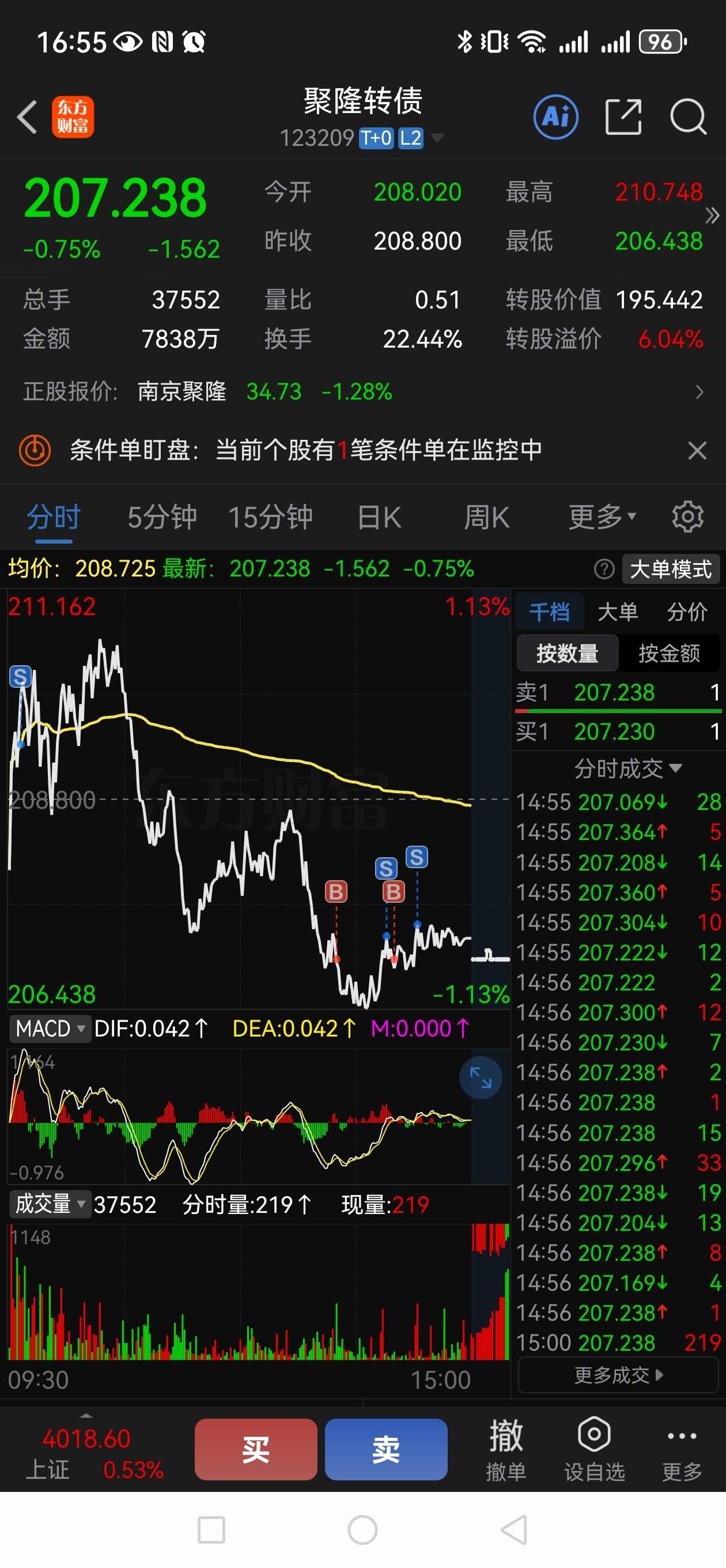 $聚隆转债(SZ123209)$ 明天大盘冲高回落无疑的!4000点会反复摩擦