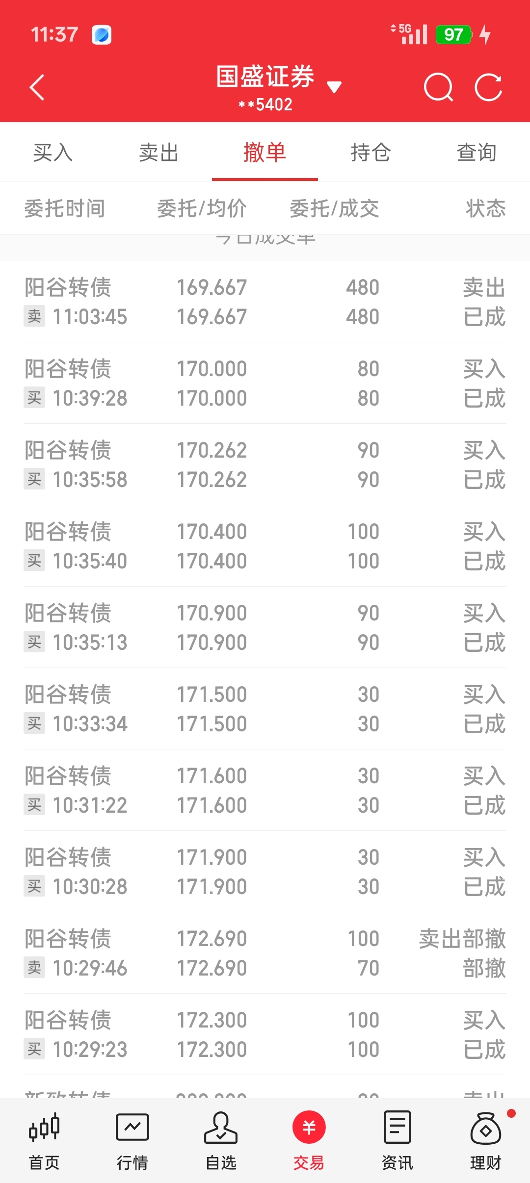 $阳谷转债(SZ123211)$ 差一点没完全成交,被割了五百多