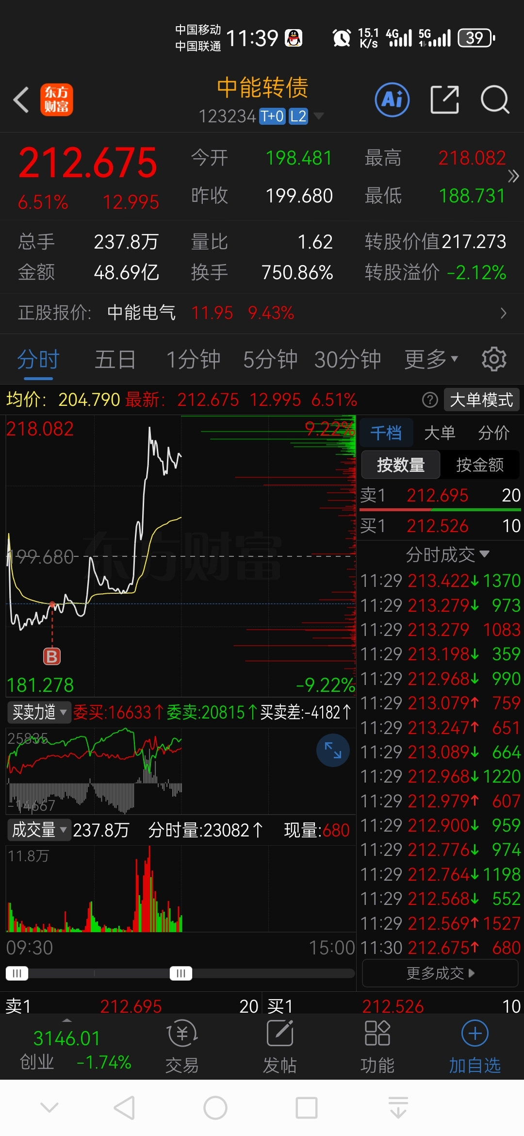 $中能转债(SZ123234)$ 10个点,下午正股不上就出了。