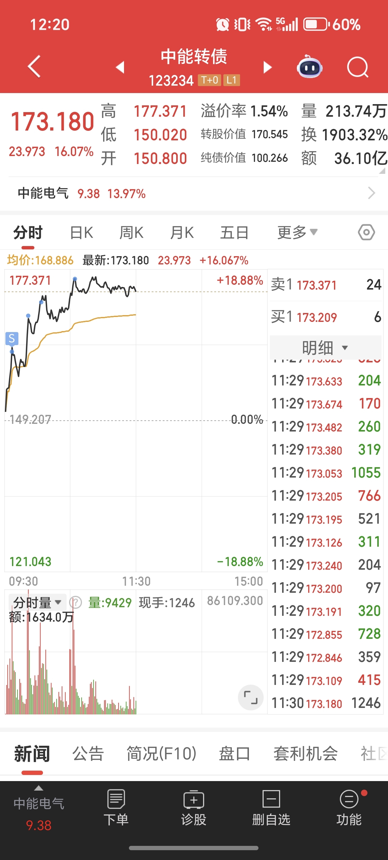 $中能转债(SZ123234)$ 还有1/5涨停送给你们