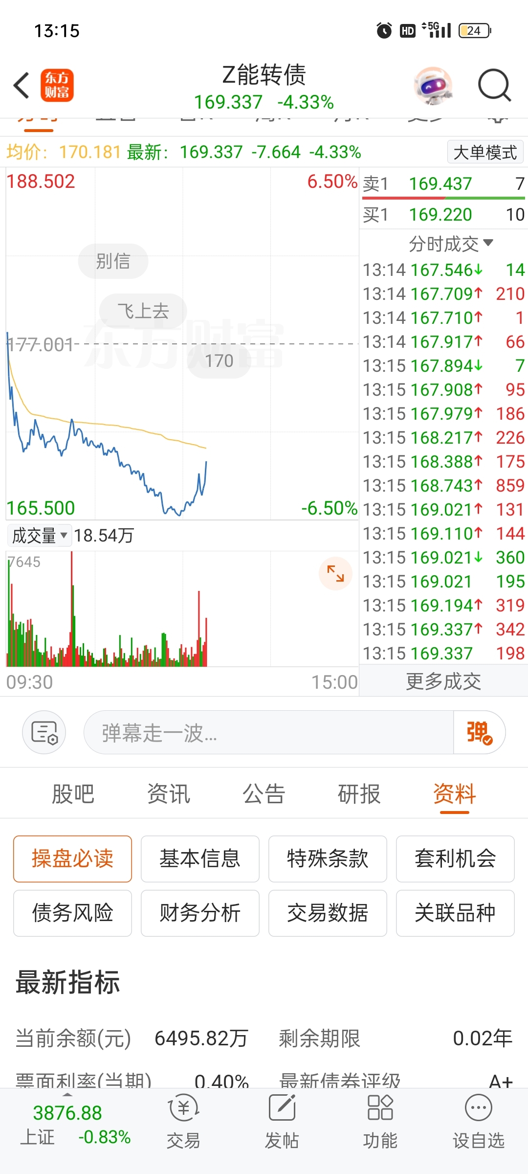 $Z能转债(SZ123234)$ 昨晚还有1亿,现在基本卖的差不多了
