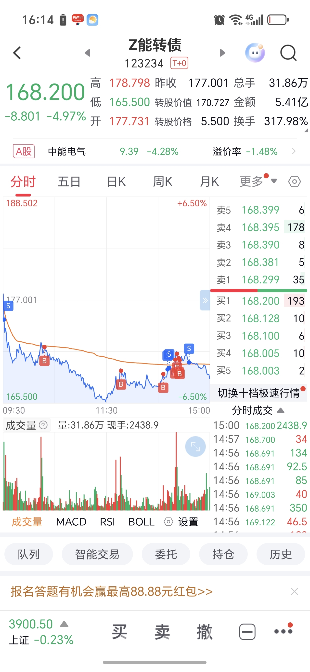 $Z能转债(SZ123234)$ 干200张进去,试试水