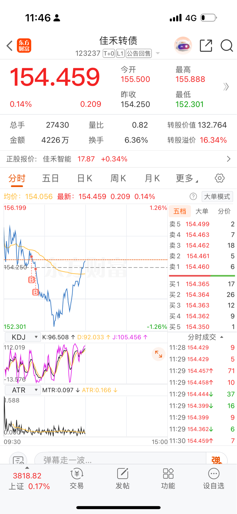 $佳禾转债(SZ123237)$ 还是没有在-1.1的时候补上,