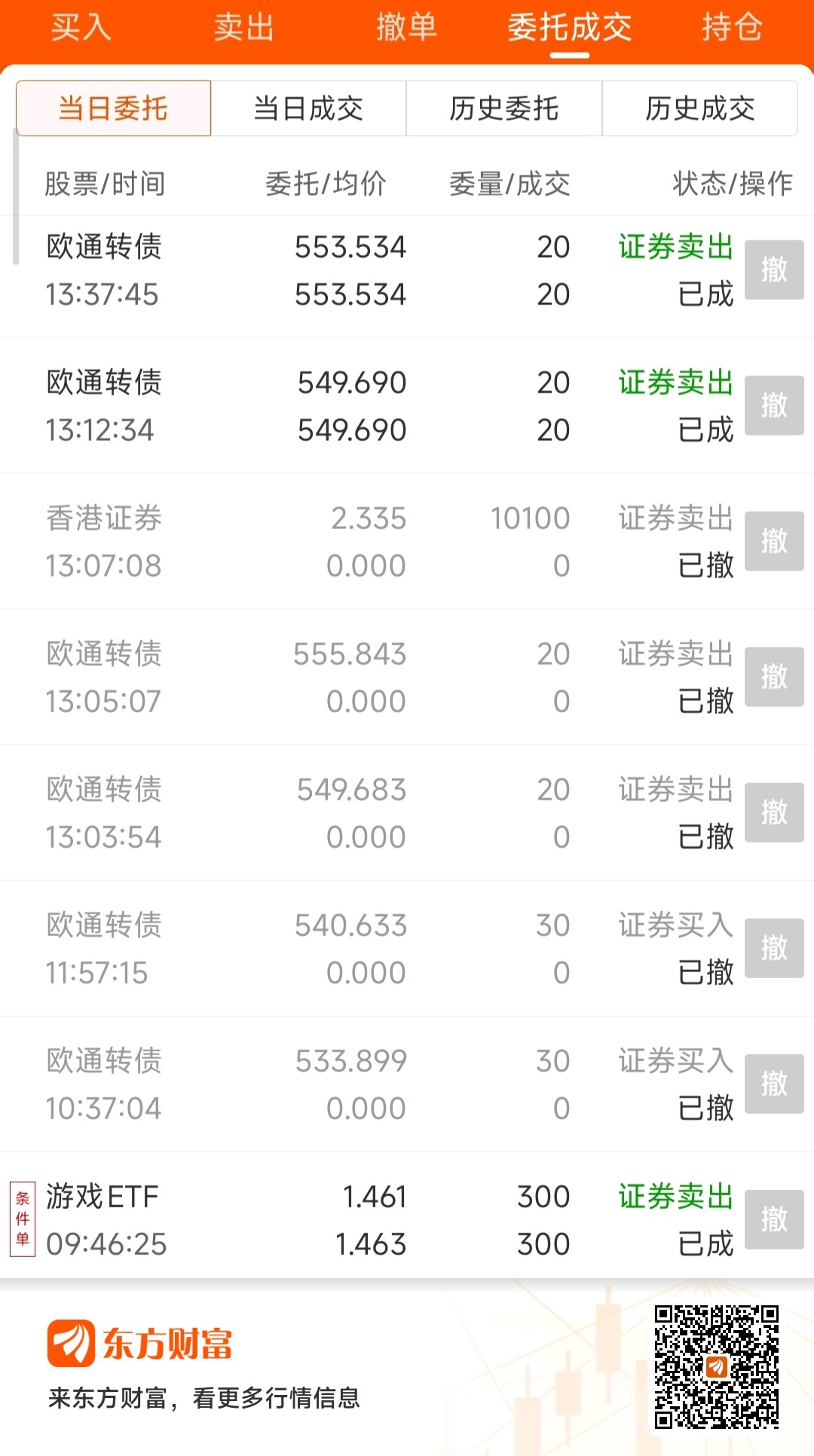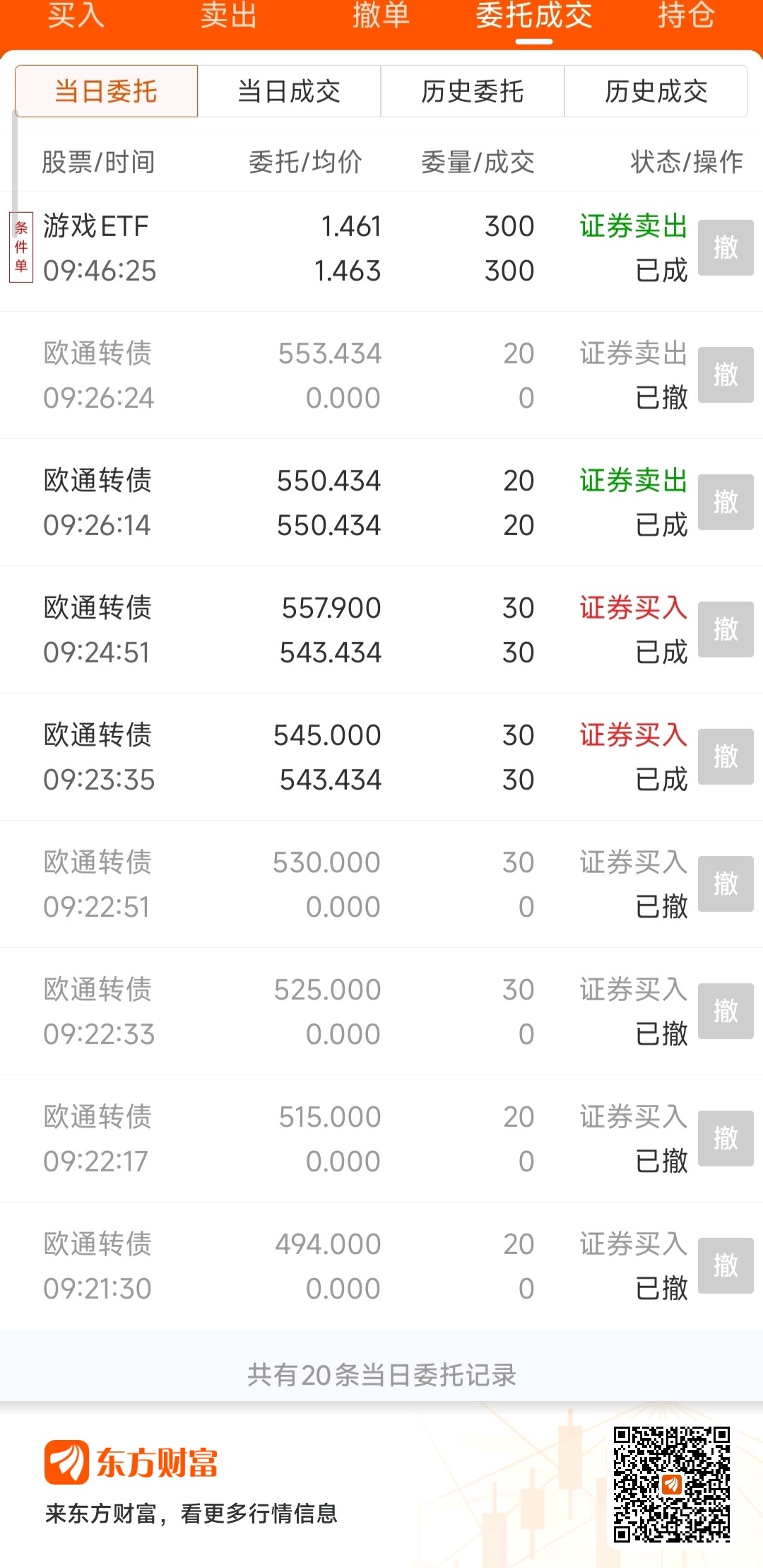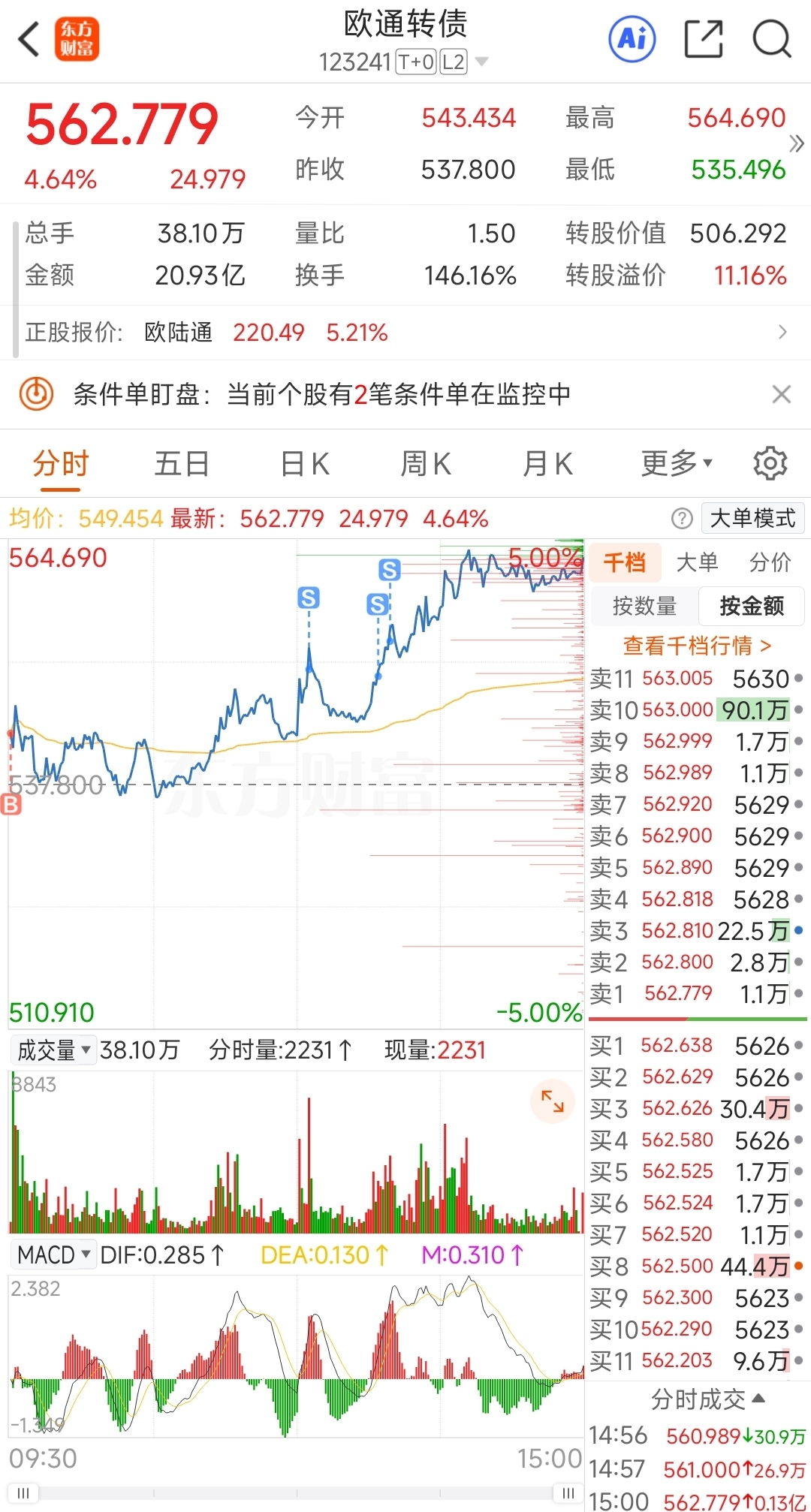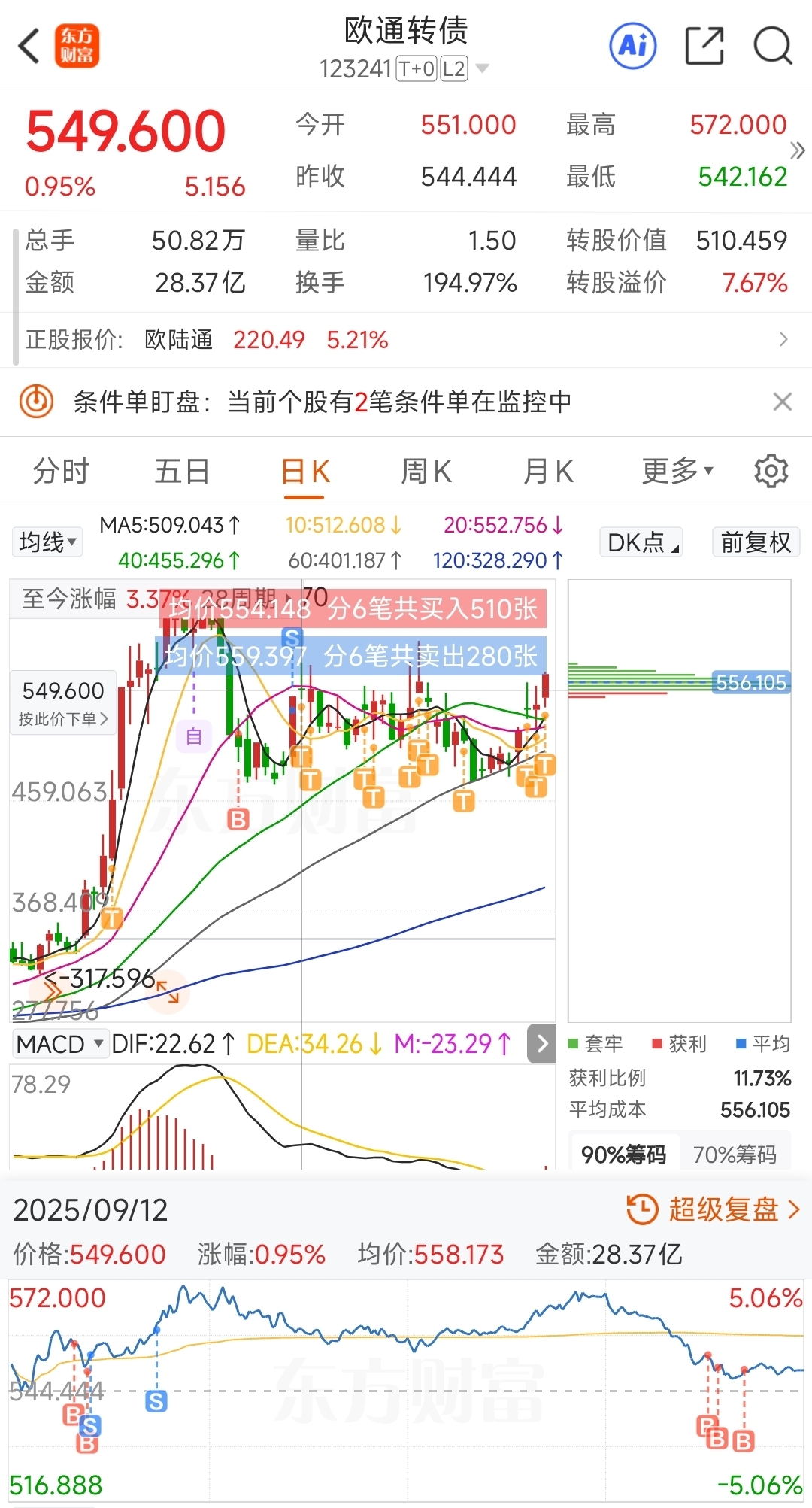 $欧通转债(SZ123241)$ 日内做T,九月份554进的,就挺适合做T的,没太多时间盯盘,否则高低得多做T。