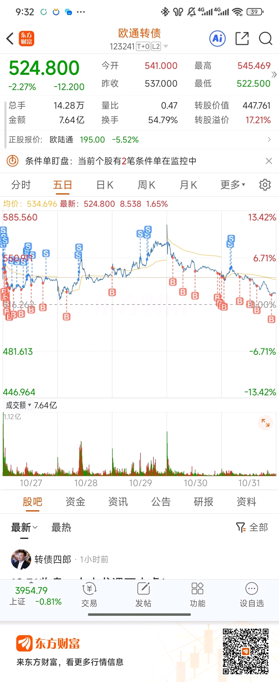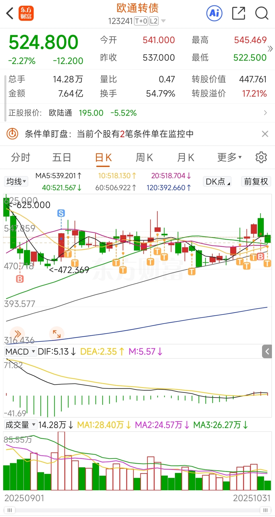 $欧通转债(SZ123241)$ 从550左右重新建仓了,这两天不断加仓了,冲得有点快了。