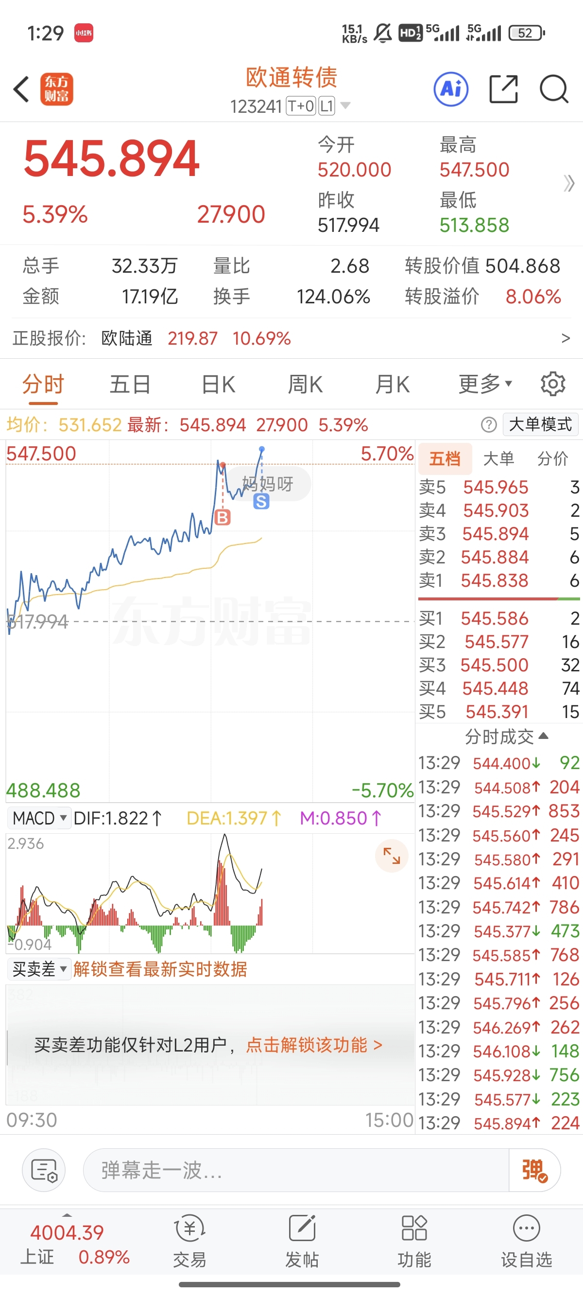 $欧通转债(SZ123241)$ 吓死我了,不跟正股