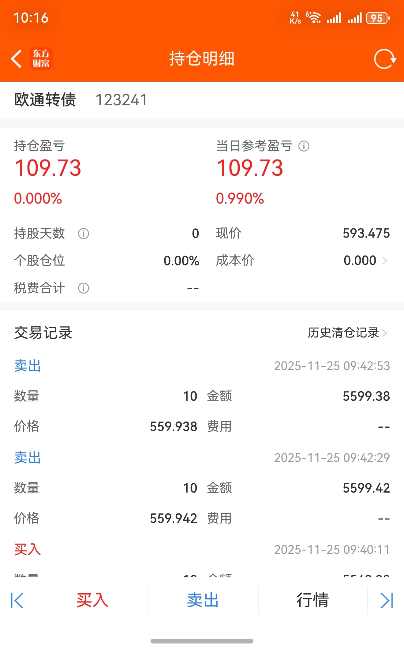 $欧通转债(SZ123241)$ 这么高不敢进了,赚100块钱就跑