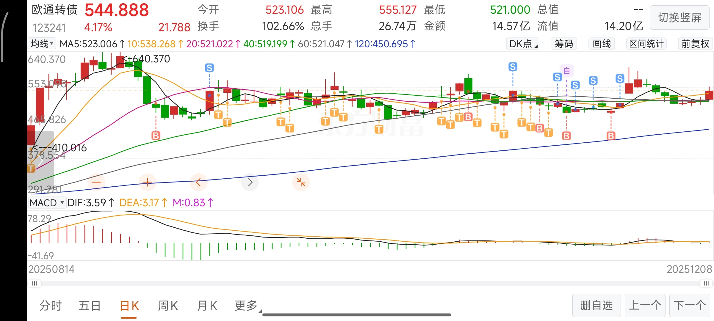 这只可转债是目前赚得最多的一只,做T做得太舒服了,出了之后没等到机会重新进。