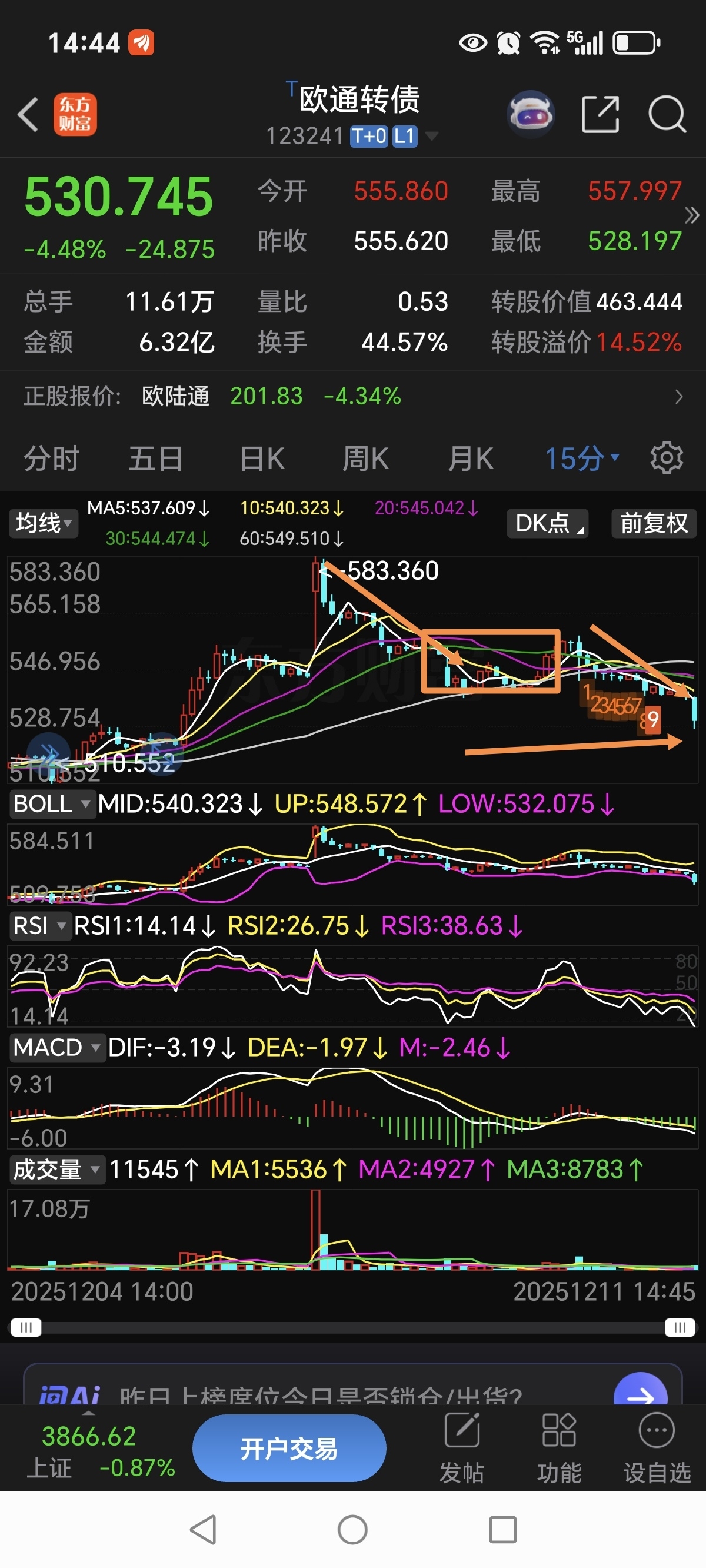 $欧通转债(SZ123241)$ 短线有看好这个股的,可以关注538位置能不能收回,这个是最小级别15分钟止跌信号