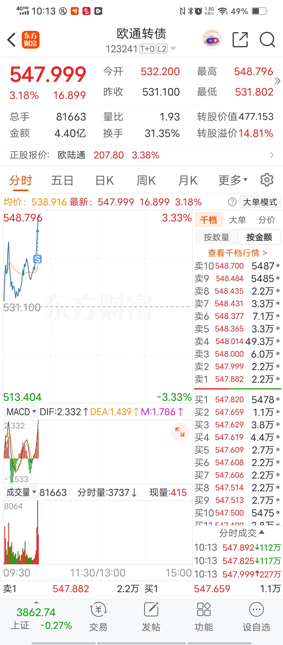 $欧通转债(SZ123241)$ 545.8还是有点走早了,算了为了争口气我不能亏,昨天540以内推荐的直杀被人骂