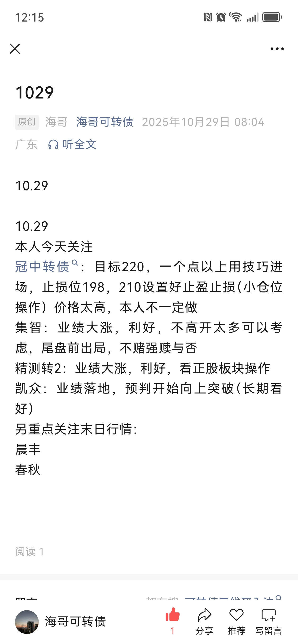 末日行情:昨天出了晨丰转债买了$春秋转债(SH113577)$ ,节奏还不错