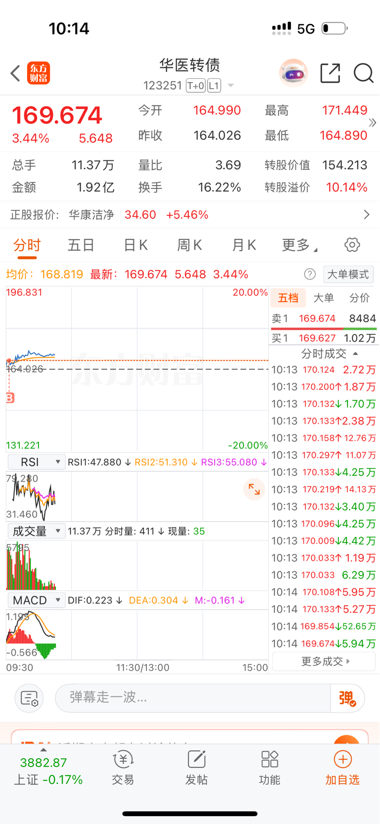 $华医转债(SZ123251)$ 超173附近,慢慢磨吧