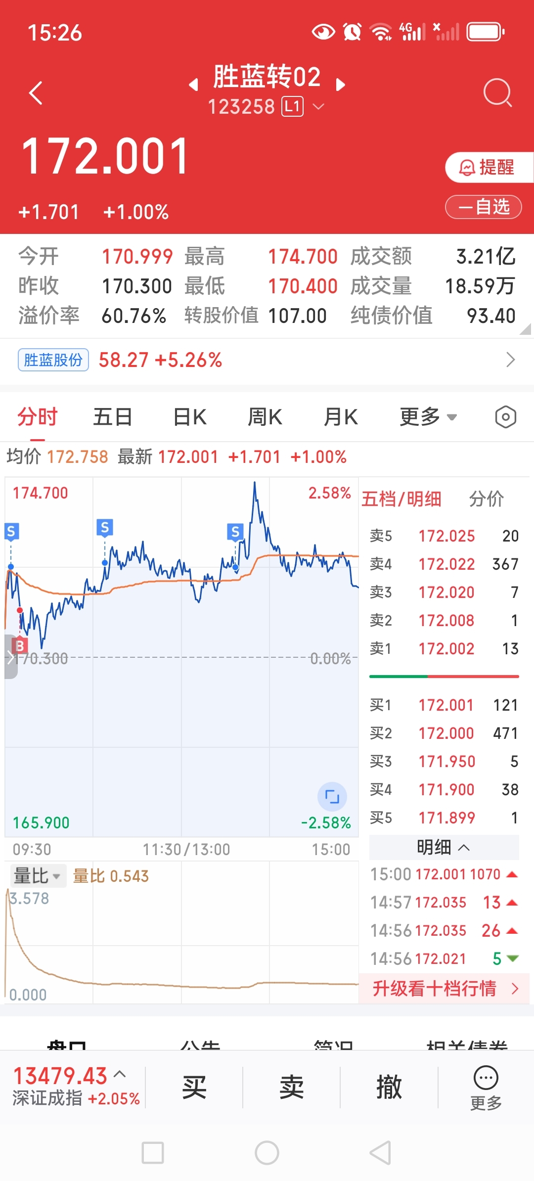 $胜蓝转02(SZ123258)$ 虽然一卖就涨,起码还在可控范围,等明天。看什么情况,很多年节后都是大跌,除了去年牛市在九月低开启