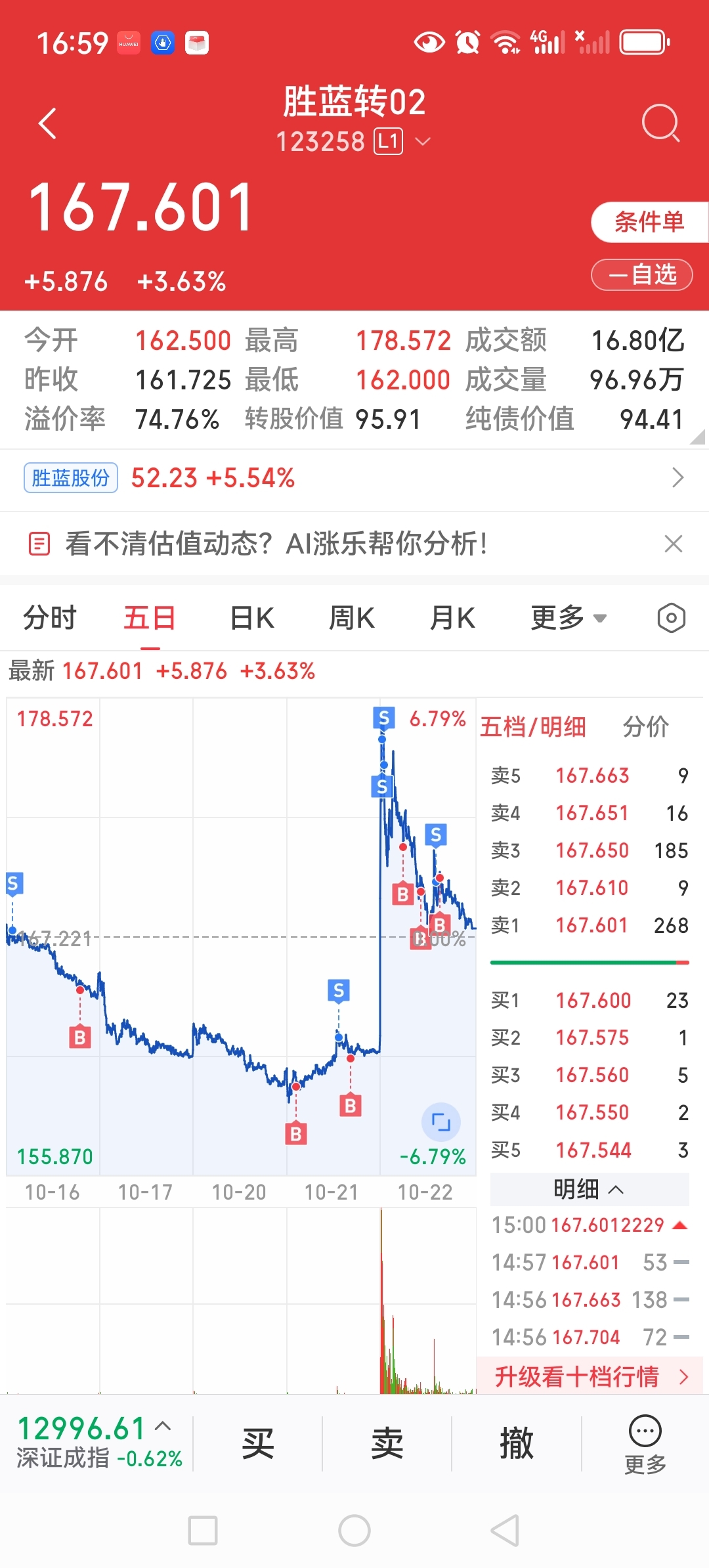 $胜蓝转02(SZ123258)$ 午盘不贪就好了,吐了三块钱价格出来