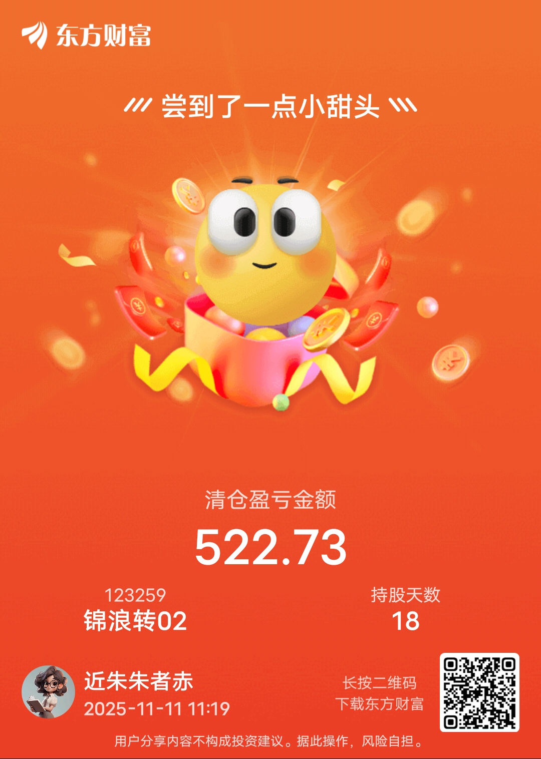 $锦浪转02(SZ123259)$ 谢谢财神爷,谢谢锦浪转02,第一次五百大洋到手